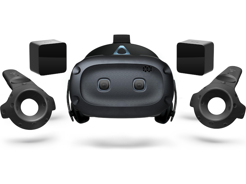 Monteringssett, 2 x HTC Vive trådløse kontrollere, VIVEPORT Infinity-kode, 2 strømadaptere for grunnstasjon, Rengjøringsklut, 2 VIVE-basestasjoner 1.0, Omformerstrømadapter, 2 VIVE-kontrollerte strømadaptere