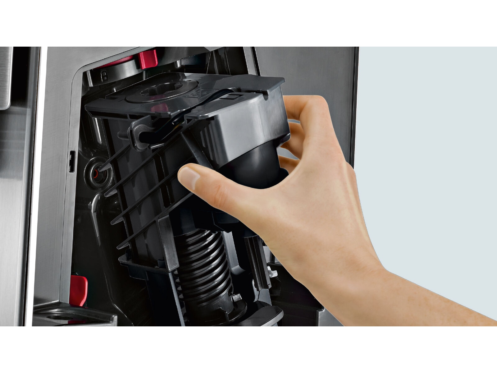 Med superSilent kan du nyte tilberedningen av kaffen i fred og ro. Den avanserte oppbyggingen av maskinen med optimal støydemping og spesialpakninger gir betydelig støyreduksjon – og gjør maskinen til den mest støysvake kaffemaskinen fra Siemens noensinne.