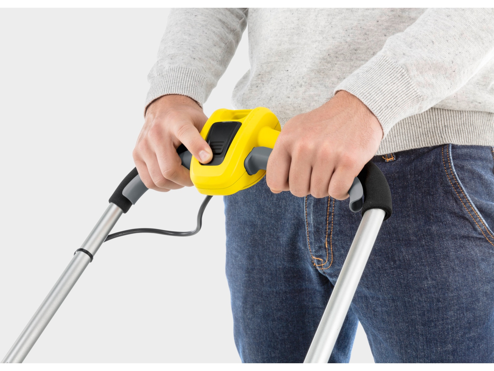 For økt fleksibilitet kan klippehøyden justeres til fire forskjellige nivåer. Og for enkel betjening har den batteridrevne gressklipperen et behagelig skumhåndtak samt brytere på begge sider. Fyllnivåindikatoren, som umiddelbart forteller deg når oppsamleren må tømmes, er også ekstremt praktisk. En sikkerhetsnøkkel fungerer som en barnesikring for å forhindre at gressklipperen startes ved et uhell. I tillegg sikrer det høydejusterbare styrehåndtaket en komfortabel arbeidsstilling, og en sammenleggbar design gjør det mulig med plassbesparende oppbevaring. Plenkammene gjør det også enkelt å klippe helt opp til kanten uten å legge igjen gress. Ett batteri og en hurtiglader er inkludert i leveransen.
