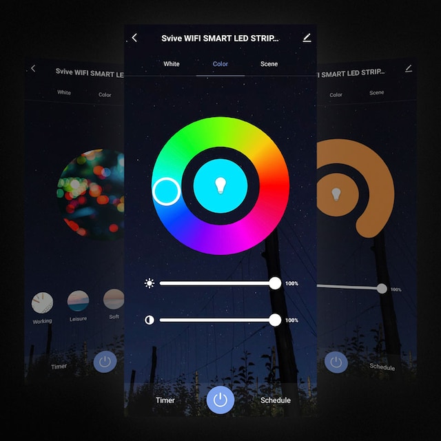 Ved å bruke SmartLife- eller Tuya-appen på smarttelefonen din kan du stille inn farge, lysstyrke, endringsmodus og endringshastighet på LED-lyslisten. Du kan til og med planlegge en tid for når den skal slå seg på og av ved hjelp av timerfunksjonen. For å gjøre det enda mer praktisk kan du bruke talestyring via Amazon Alexa eller Google Home.