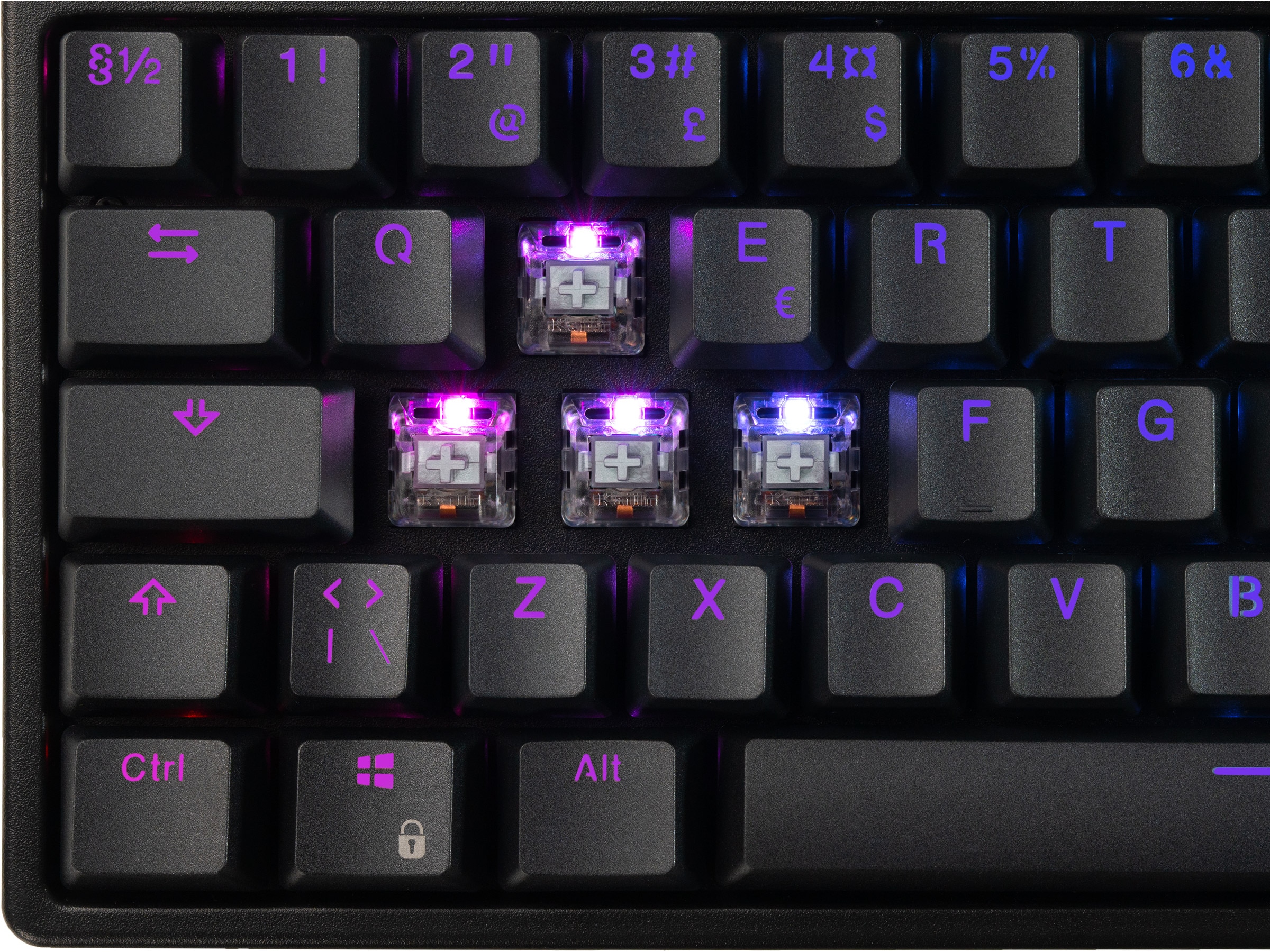 Den lineære Silver Speed-bryteren aktiveres etter bare 1,1 millimeter. Det gir en mye raskere respons enn røde eller blå brytere, noe som gjør dette tastaturet perfekt for konkurransespill. Med en levetid på 70 000 000 tastetrykk er Speed-bryterne bygd for pålitelighet og ytelse i mange år fremover. I Svive Triton-serien kan du skifte ut brytere, slik at du får den ultimate tilpasningsmuligheten! Tilordne forskjellige MX-brytere til en hvilken som helst tast på tastaturet!