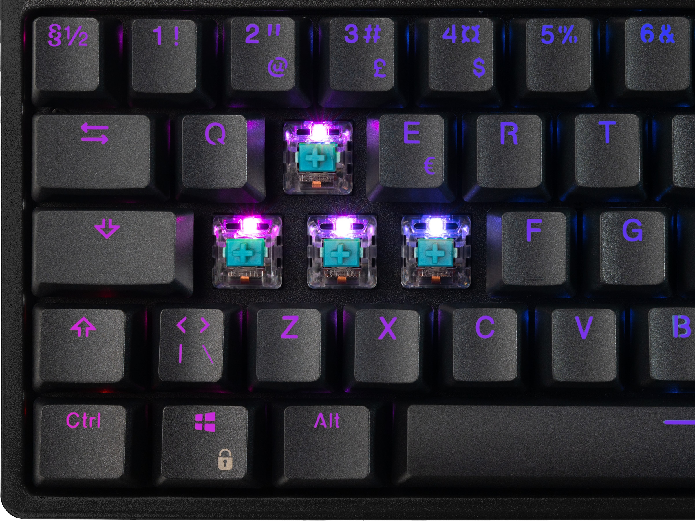 Den blå bryteren avgir en klikkelyd ved hvert tastetrykk, noe som gir deg klart hørbar og taktil feedback. Denne typen bryter krever 50 g aktiveringskraft og har en høyere tilbakestillingsposisjon. Med en levetid på 70 000 000 tastetrykk er disse bryterne bygd for pålitelighet og ytelse i mange år fremover. I Svive Triton-serien kan du skifte ut brytere, slik at du får den ultimate tilpasningsmuligheten! Tilordne forskjellige MX-brytere til en hvilken som helst tast på tastaturet!
