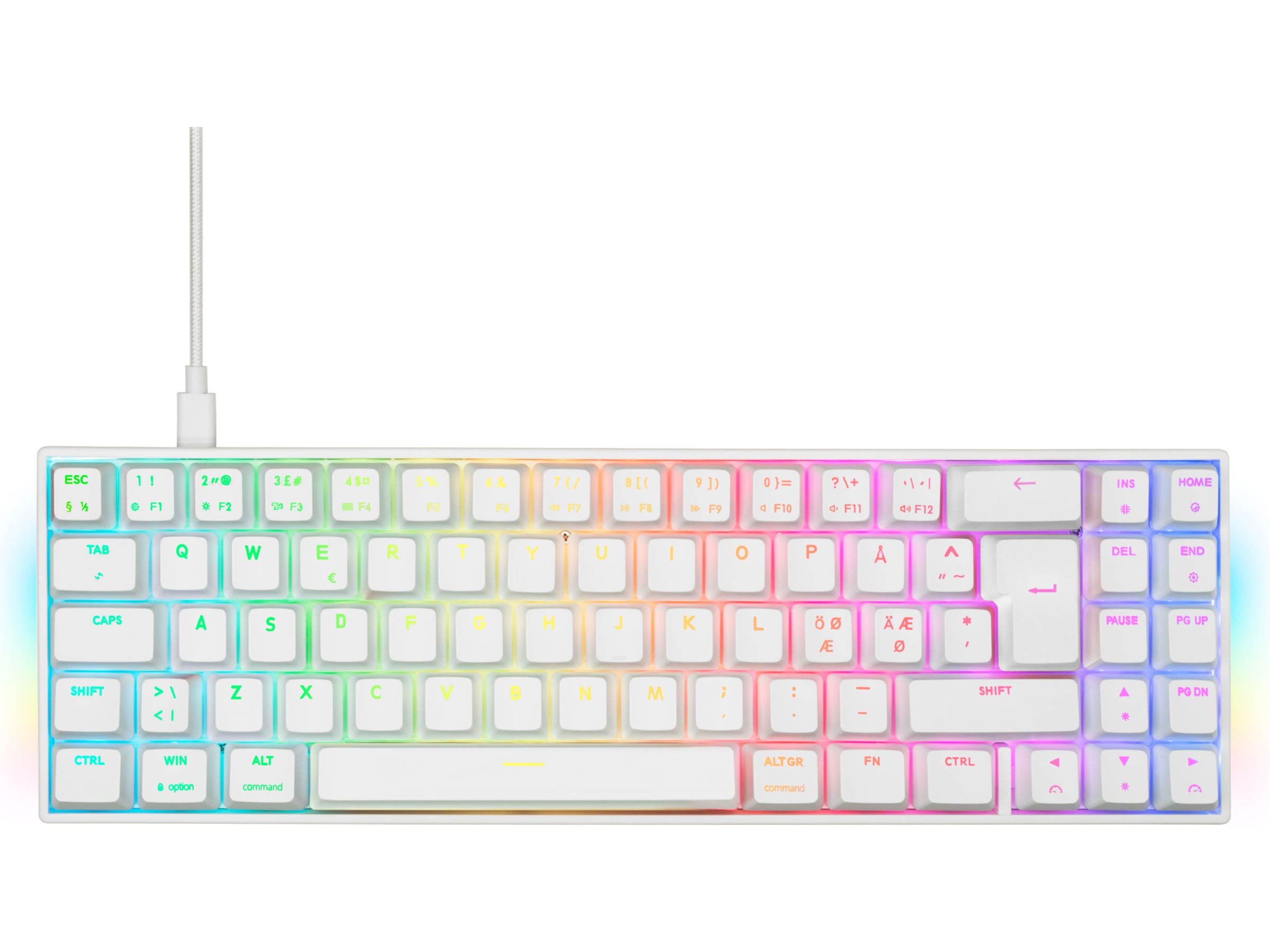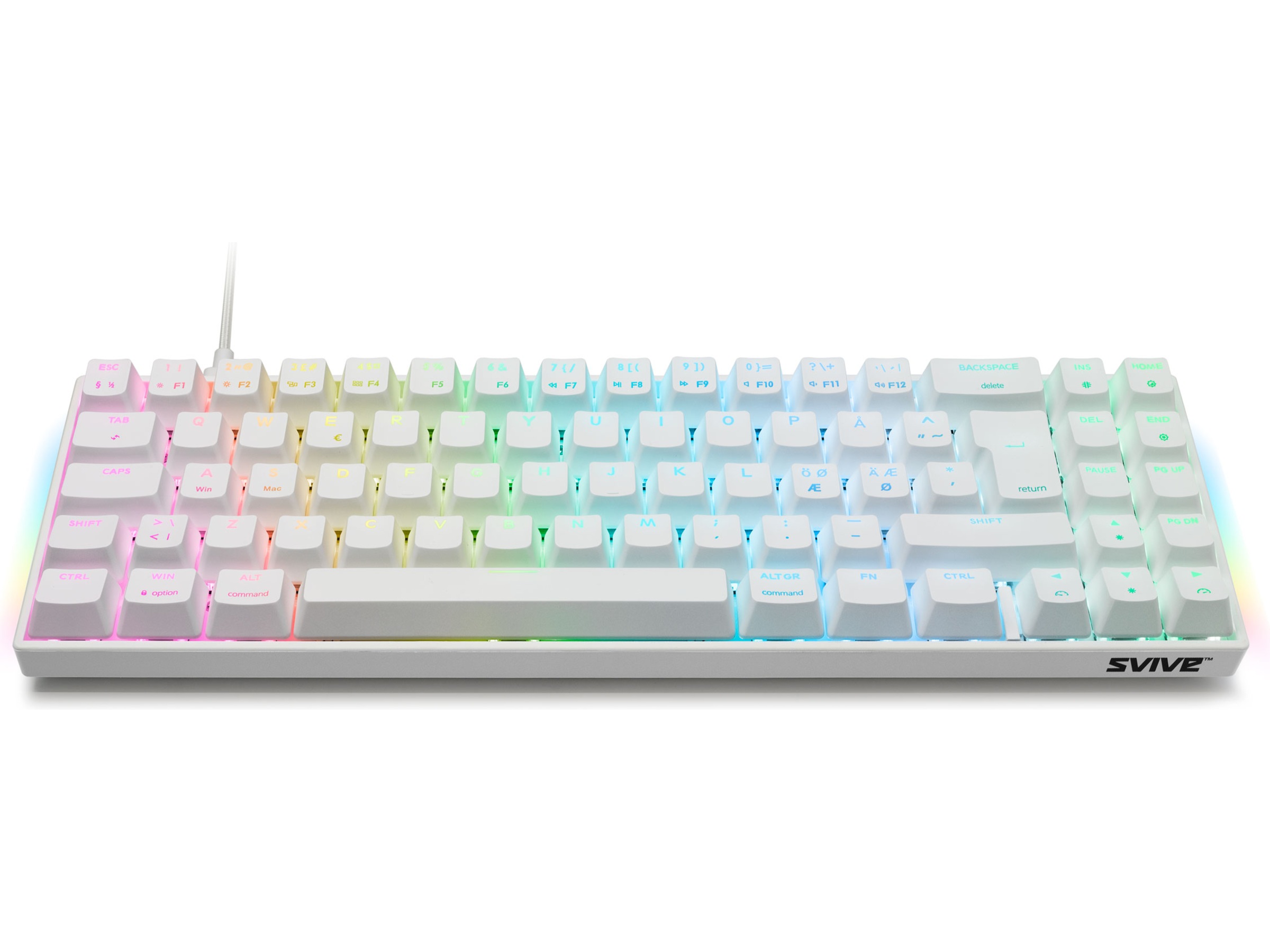 Svive Triton 70%-tastaturet er utstyrt med RGB-bakgrunnsbelysning, noe som gir deg muligheten til å tilpasse tastaturet ved å velge en hvilken som helst fargesammensetning du ønsker ved hjelp av den medfølgende programvaren. Med over 16 millioner farger og sju forskjellige lysmoduser, kan du sikre at tastaturet matcher resten av oppsettet ditt, og holde alt opplyst i mørket. I tillegg gir Svive Triton-programvaren deg muligheten til å tilordne utallige makrofunksjoner til tastene dine. Makroer øker produktiviteten og hastigheten i spill når det teller som mest.