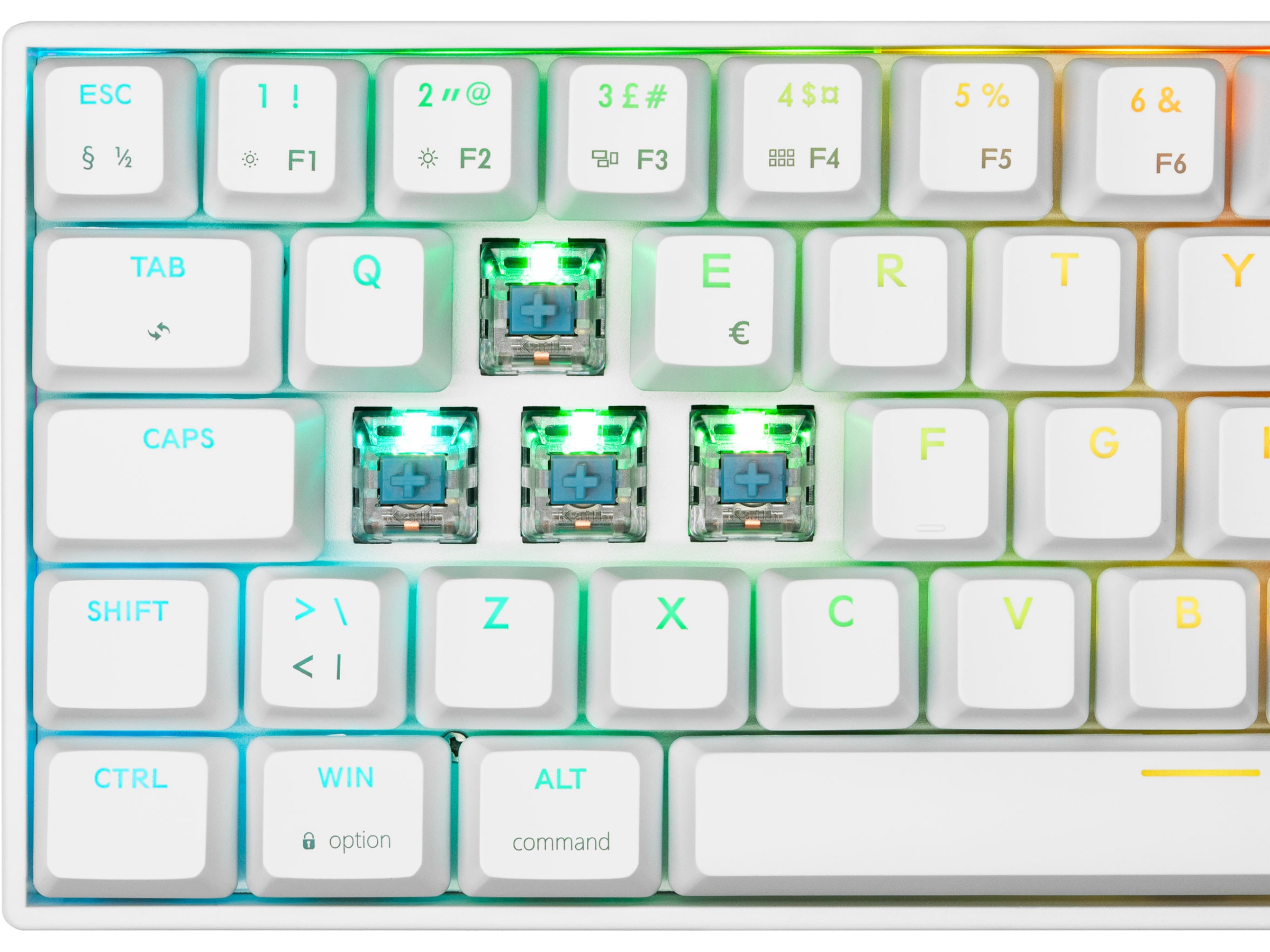 Den blå bryteren avgir en klikkelyd ved hvert tastetrykk, noe som gir deg klart hørbar og taktil feedback. Denne typen bryter krever 50 g aktiveringskraft og har en høyere tilbakestillingsposisjon. Med en levetid på 70 000 000 tastetrykk er disse bryterne bygd for pålitelighet og ytelse i mange år fremover. I Svive Triton-serien kan du skifte ut brytere, slik at du får den ultimate tilpasningsmuligheten! Tilordne forskjellige MX-brytere til en hvilken som helst tast på tastaturet!