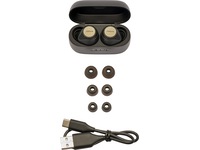 Vi har pakket inn masse greier i disse små øreproppene; 6mm høyttalere for overraskende kraftig bass, intuitive volumkontroller (høyre for opp, venstre for ned), vår egen bunnsolide trådløse tilkobling og en tilpasningsbar equalizer, slik at du kan persontilpasse musikken din selv.