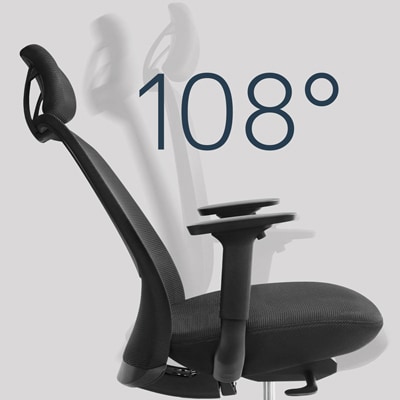 Kontorstolen fra iiglo har en justerbar og vippbar ryggstøtte som kan låses på plass i en vinkel på mellom 90 og 108 grader. Den gir derfor god støtte for konsentrert arbeid så vel som en mer avslappet sittestilling.