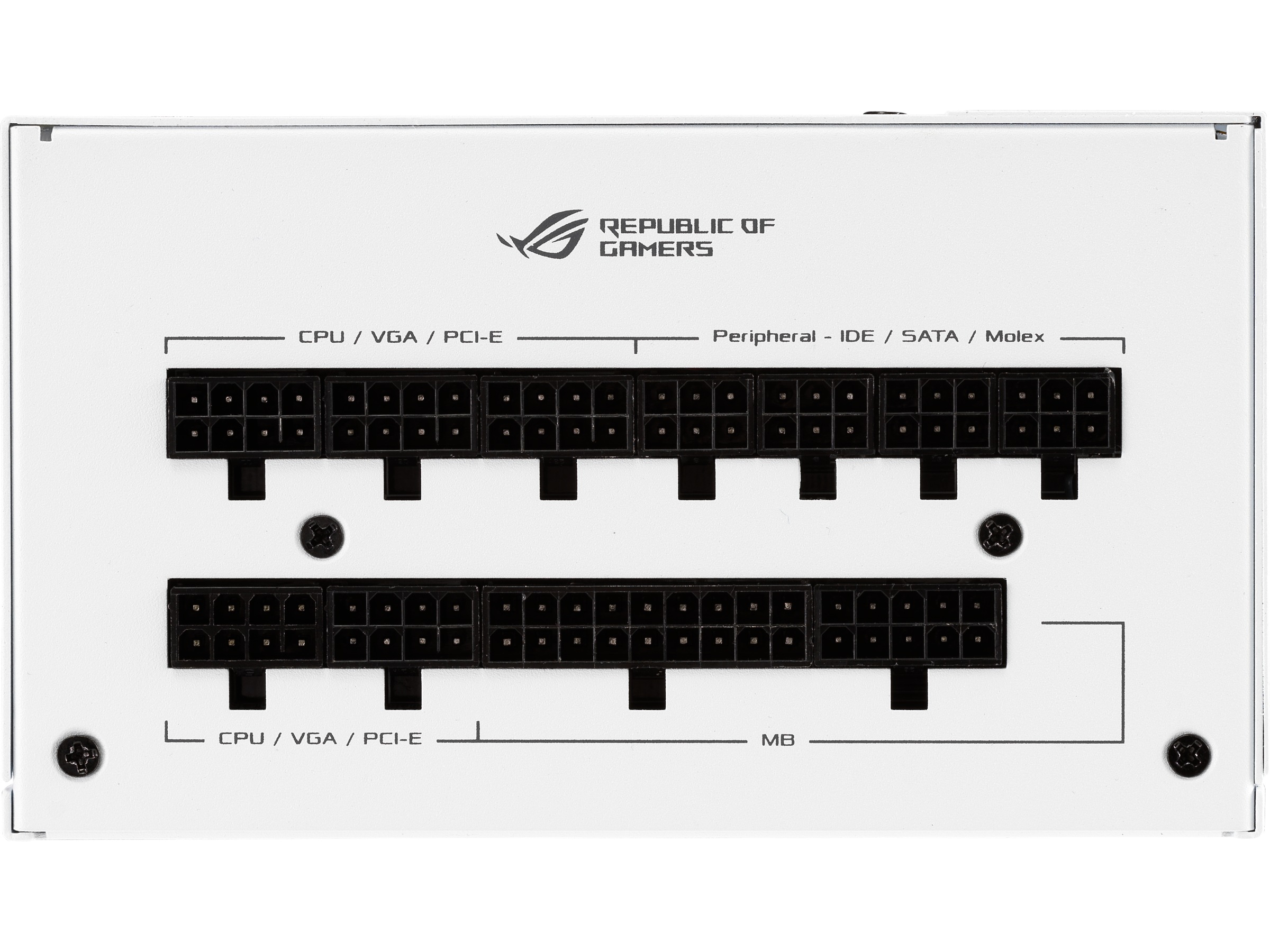 The ROG Strix 850W White Edition PSU features sleeved modular cables, a variety of decals, and is dressed to compliment the aesthetics of a white gaming rig. Massive ROG heatsinks trickle down from the mighty ROG Thor series and Axial-tech fan design from our premium NVIDIA RTX™ graphics cards also make an appearance. Below the surface, low RDS (on) MOSFETs and premium Japanese capacitors take on power delivery with ease. The result is an incredibly quiet and efficient power supply with the reserves to handle the most intense gaming scenarios.