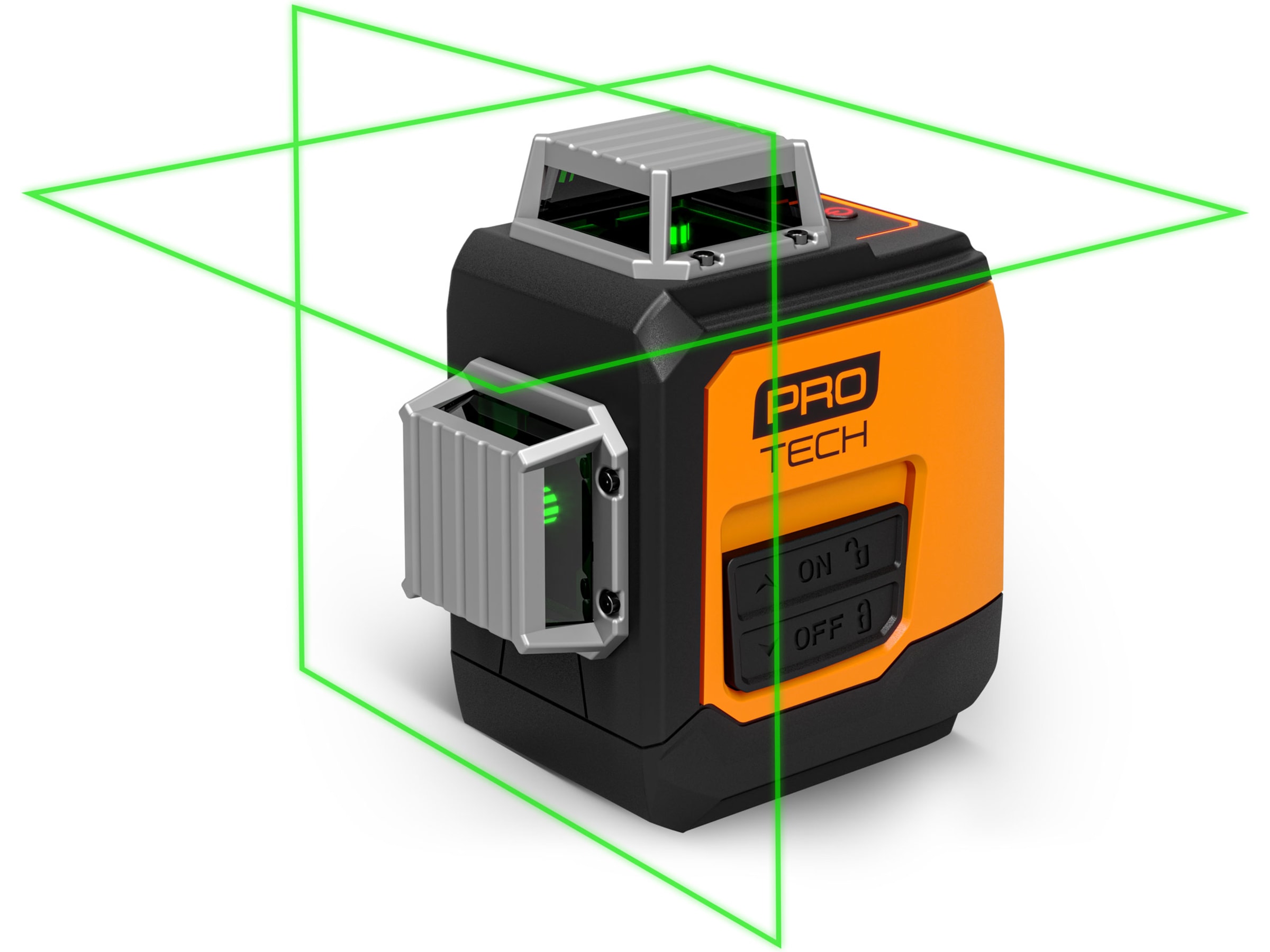 Protech 360° Cross Leveller projiserer linjene med en høy nøyaktighet på opptil ±0,5 mm/m, og sørger for at begge linjene er nøyaktig jevne og akkurat der du vil ha dem. Den tilbyr et arbeidsområde på 20 meter, og den grønne laseren gir deg høy synlighet under alle slags forhold.