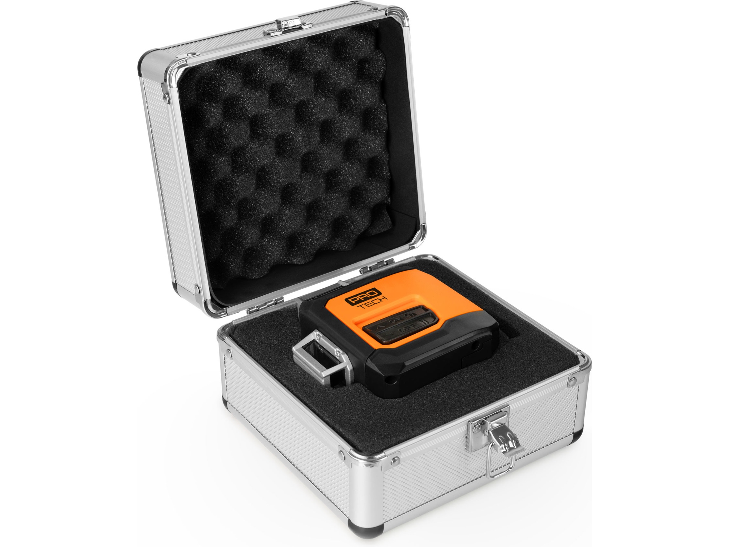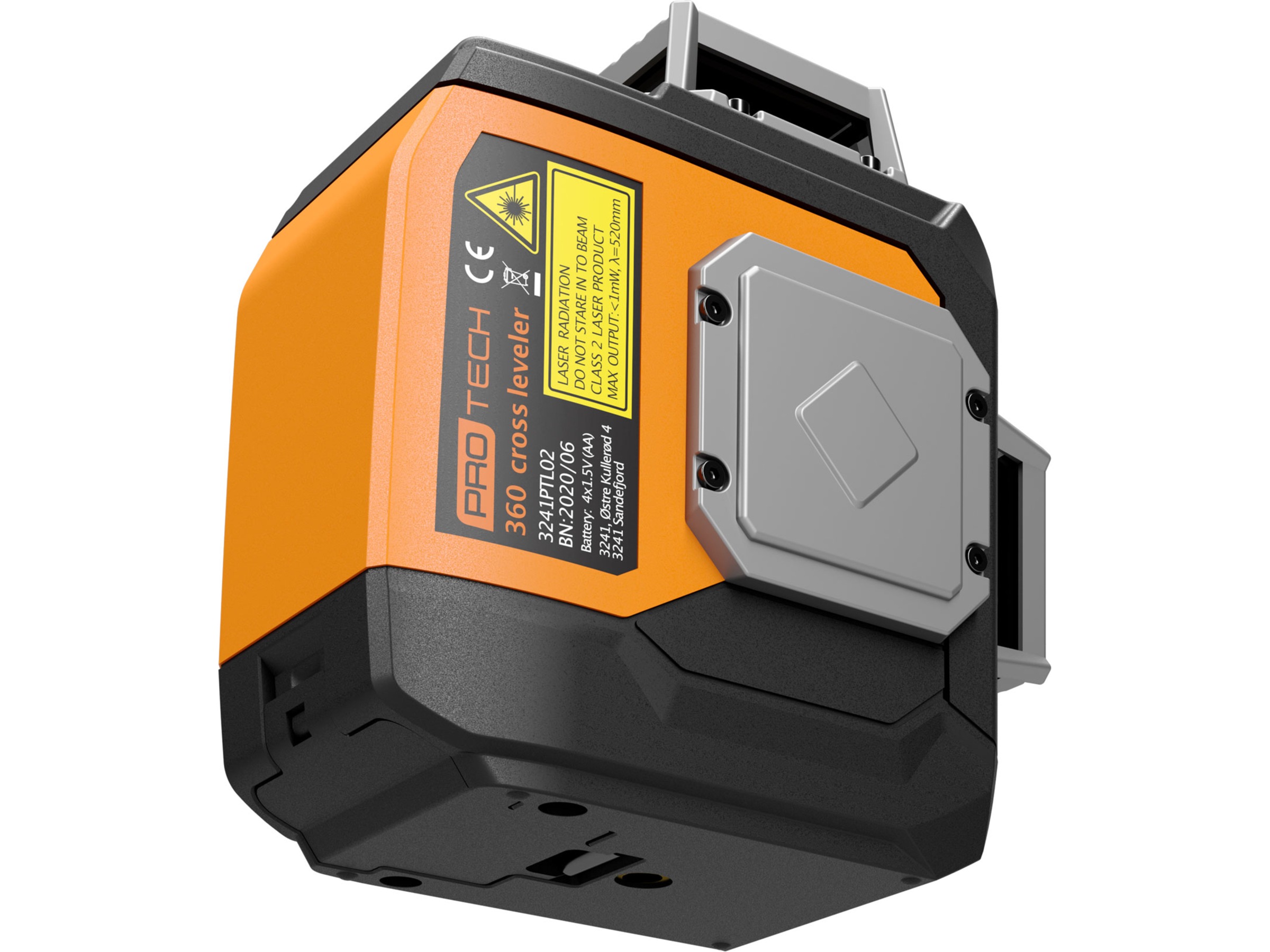 Med én enkelt bryter vises 360° vertikale og horisontale grønne laserlinjer samtidig, slik at du kan måle og merke av i et fullstendig romoppsett. Dersom du ønsker det, er det også mulig å vise kun en 360° vertikal eller 360° horisontal linje. Protech 360° Cross Leveller er enkel å bruke og garanterer høy presisjon – ideelt for å justere arbeid, byggeprosjekter og boliginnredning.