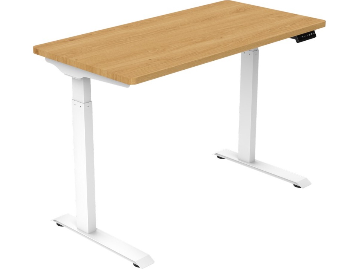 Knappene på displayet lar deg enkelt justere høyden på bordplaten. Med enkle trykk justerer du raskt høyden, så du kan variere mellom å sitte eller stå når du bruker tid foran skjermen. Motoren er perfekt på et hjemmekontor, når flere deler skrivebord eller for deg som ønsker å stå mens du jobber. iiglo ergonomisk hev og senk skrivebord gir mange muligheter for god høydejustering fra 73cm helt opp til 123 cm i høyde. Den nette størrelsen på 120x60 cm betyr at du enkelt kan få plass til bordet flere steder.
