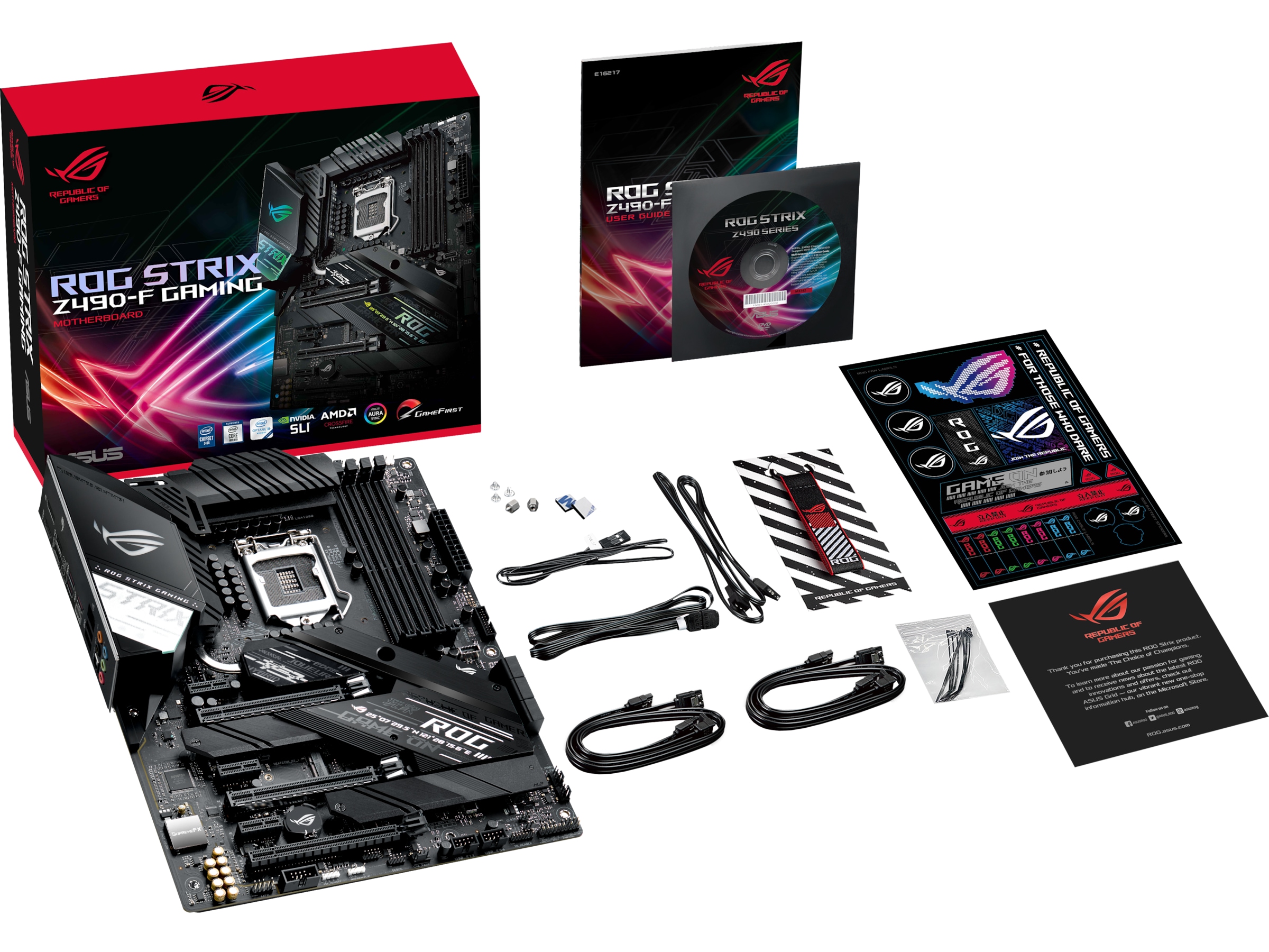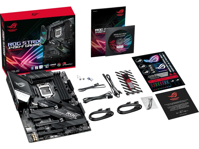 | Inkludert tilbehør | Forlengelseskabel for RGB (RGBW) LED-stripe, ROG-takkekort, ROG viftemerker, ROG-nøkkelkjede, 3 x M.2-skruer, Gummipute, Termistorkabel, Kabelfestebånd, Forlengelseskabel for RGB Addressable LED |