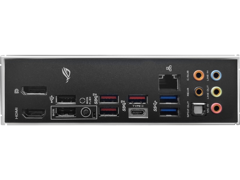 | Grensesnitt | 1 x LAN (2.5Gigabit Ethernet), 1 x lydutlinje (bakre) - minijakk, 1 x USB-C Gen2, 1 x DisplayPort, 1 x TOSLINK, 1 x lydutlinje - minijakk, 1 x HDMI, 1 x lydinnlinje - minijakk, 1 x mikrofon - minijakk, 2 x USB 3.2 Gen 1, 3 x USB 3.2 Gen 2, 2 x USB 2.0, 1 x lydutlinje (senter/subbasshøyttaler) - minijakk |