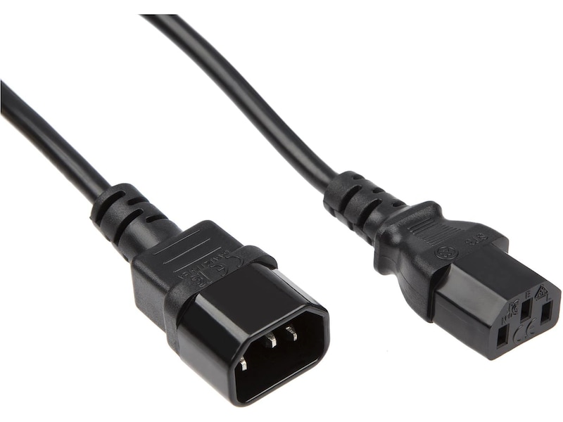 Denne kabelen brukes som skjøtekabel. C13-kontakten brukes til monitorer og PCer, mens C14-kontakten sitter i selve monitoren eller PCen.