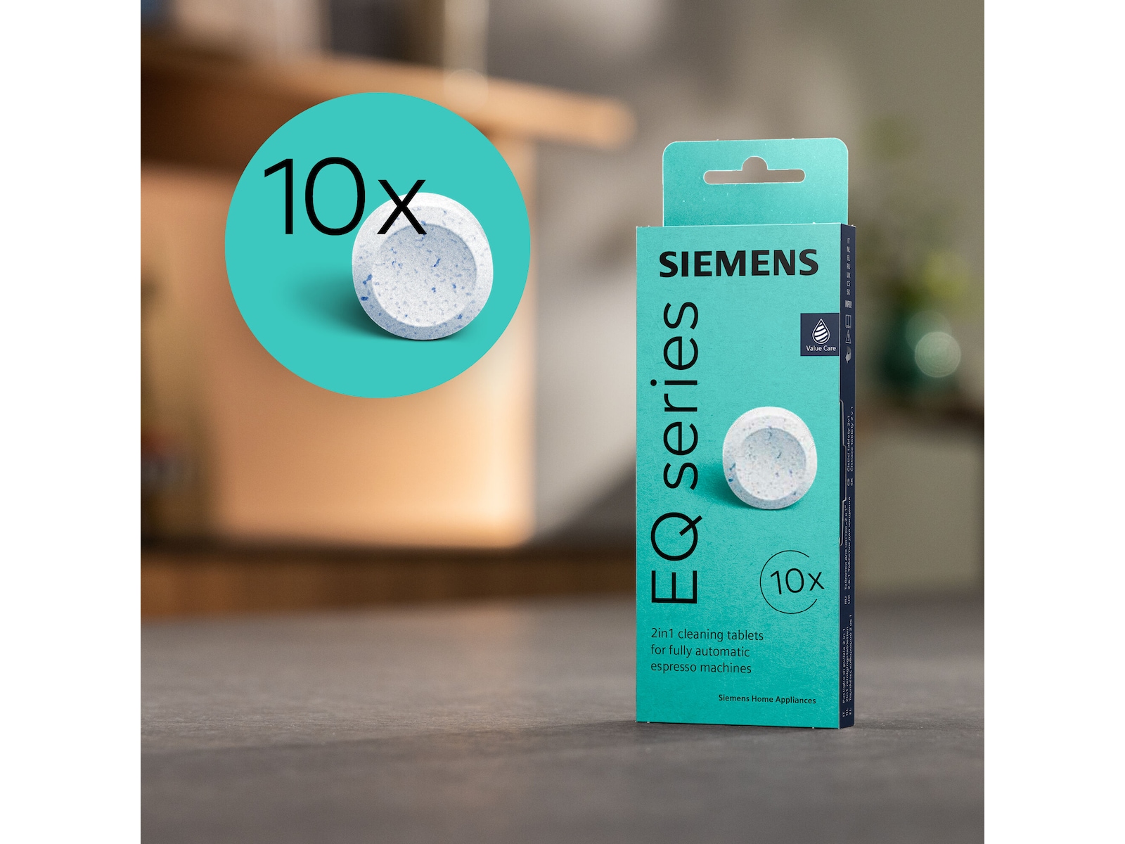 Siemens TZ80001B rensetabletter Den beste aromaen og optimal rengjøring med rensetablettene i EQ-serien – originalt fra Siemens. Sørger for den beste aromaen og forlenger maskinens levetid takket være en 2-i-1-formel. Kraftig, rask og pålitelig fjerning av kaffeoljerester. Passer 100 %. 100 % nytelse takket være Value Care med originalt Siemens-tilbehør. Funksjoner 2-i-1: For den beste aromaen + lang levetid for apparatet Apparatets levetid forlenges på grunn av optimal fjerning av kaffeoljer fra bryggeenheten Optimalisert for det automatiske renseprogrammet til de fullautomatiske espressomaskinene A02 Passer for alle helautomatiske kaffemaskiner i EQ-serien samt innebygde kaffesentre Passer for alle helautomatiske espressomaskiner i surpresso-serien Innhold: 10 rensetabletter Sikkerhetsdatablad
