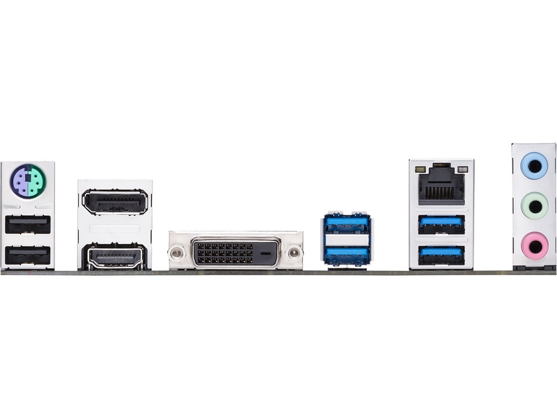 2 x USB 2.0, 4 x USB 3.2 Gen 1, 1 x DisplayPort, 1 x lydinnlinje - minijakk, 1 x mikrofon - minijakk, 1 x HDMI, 1 x lydutlinje - minijakk, 1 x PS/2-tastatur / -mus, 1 x DVI-D, 1 x LAN (Gigabit Ethernet)
