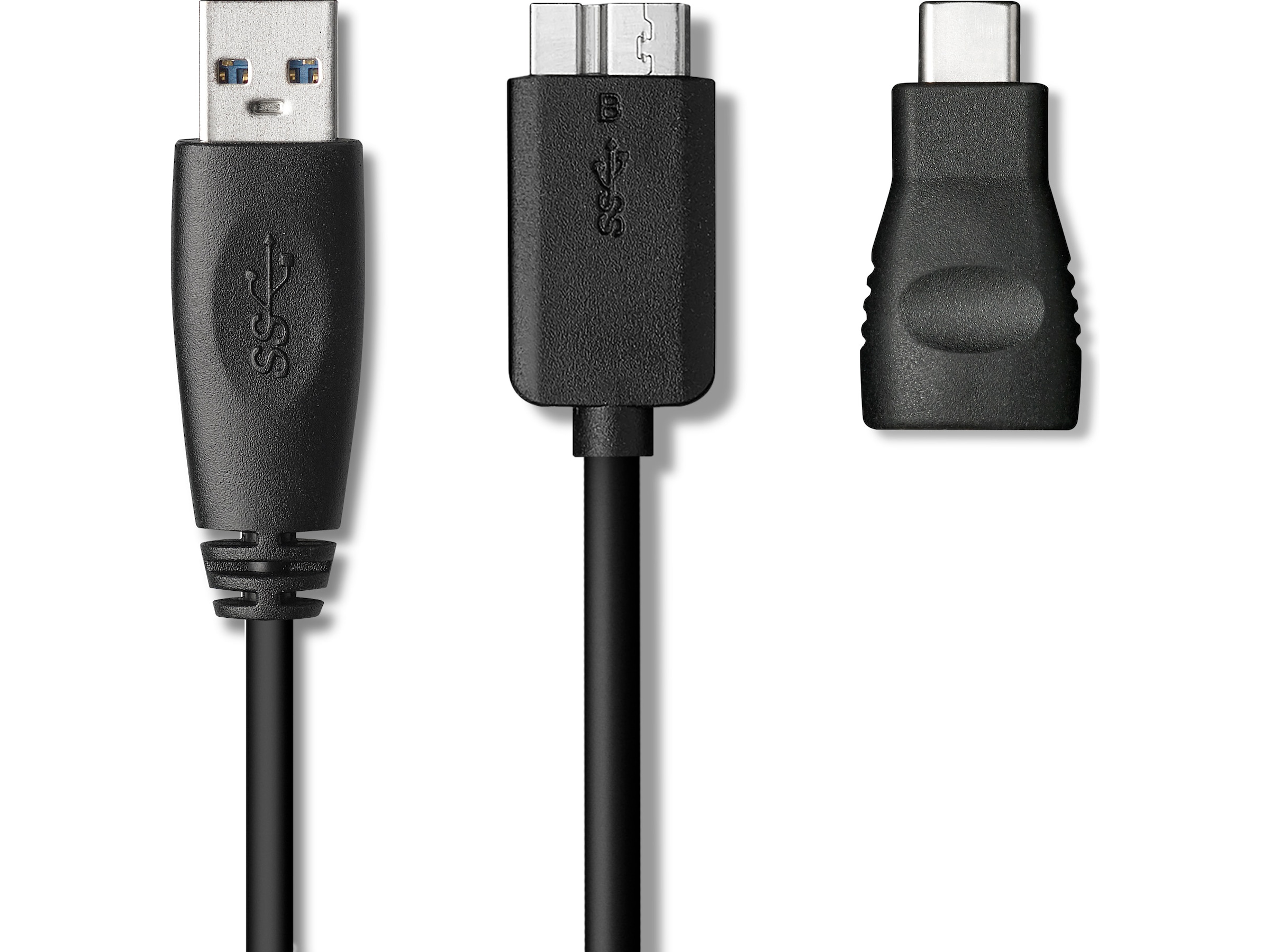 1 x USB 3.0-kabel - 45.72 cm, 1 x USB-C 3.0-adapter