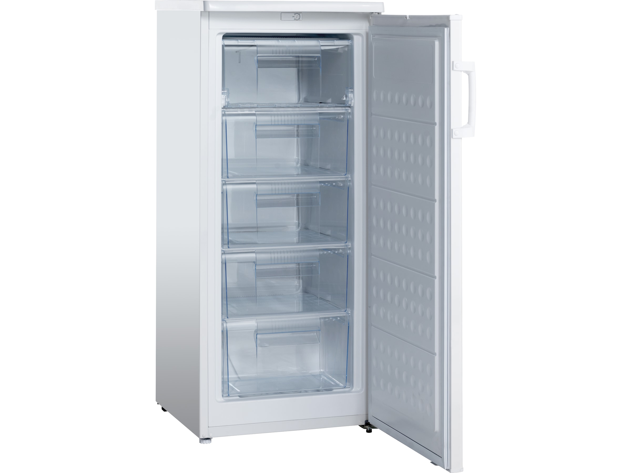 Praktisk fryser med 145 liters kapasitet og statisk fryser. SFS 170 W fryseren er en god størrelse for de fleste husholdninger og er ideell for å legge til ekstra frysekapasitet hvis et kombiskap ikke lenger er nok for husholdningen. Det øverste hyllen i fryseren har en fryseklaff, og under den er det fire gjennomsiktige fryseskuffer. Den frittstående fryseren leveres med justerbare føtter slik at den kan stå flatt på hvilken som helst overflate. Skapsdøren åpnes til høyre, men døren kan også snus, slik at skapet kan plasseres fleksibelt i ethvert rom.