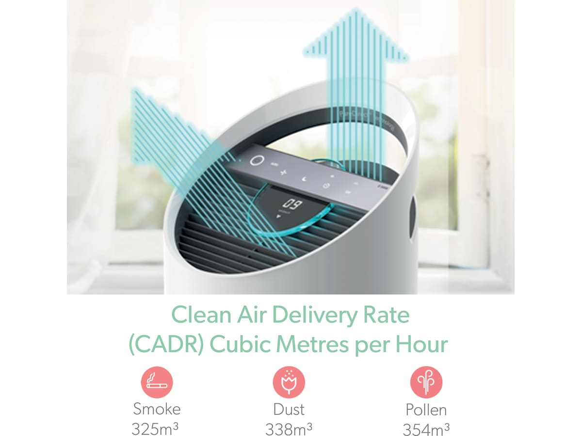 Den har 360 graders luftfiltrering, UV-sterilisering og SensorPod. Den er designet for store rom (f.eks. soverom, stue, spisestue, kjøkken) og er utmerket for å fjerne mikroskopiske partikler som kan forårsake allergier som høysnue, luftbårne bakterier og virus, støv, VOC-gasser, røyk, flass og hår fra kjæledyr.