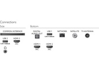 Kontakttype Hodetelefoner - side, 2 x HDMI - bunn, USB - bunn, Digital lydutgang (optisk) - bunn, LAN - bunn, Service, USB - side, HDMI - side