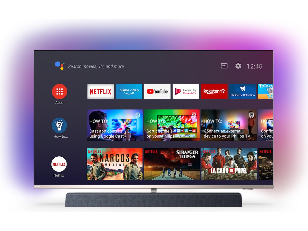 Philips Android-TV-en gir deg innholdet du vil ha, når du vil ha det. Du kan tilpasse hjemmeskjermen for å vise favorittappene dine, slik at det er enkelt å strømme filmene og TV-seriene du er glad i – eller fortsette fra der du slapp