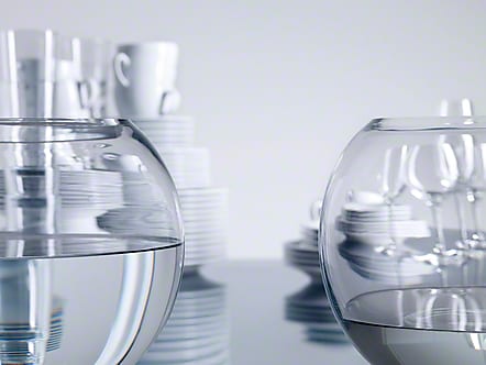 Miele oppvaskmaskin rengjør utelukkende med vann fra springen, og programmet Automatic bruker kun 6 liter vann – det er betydelig mindre enn en full vaskekum. Med dette har Miele oppnådd en reduksjon av vannforbruket med 85 % de siste 30 årene. Også strømforbruket er redusert til nye verdier: I programmet ECO har oppvaskmaskinene fra Miele en forbruksverdi på kun 0,67 kWh.
