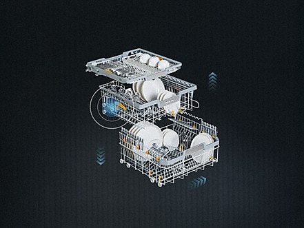 Ulike typer servise og bestikk får alltid plass på grunn av de mange mulighetene. Det elegante håndtaket sørger for at du enkelt kan trekke ut kurvene – uansett vinkel. Knottene på FlexCare-kopphyllen sørger for at koppene holdes godt på plass. Skåler plasseres best i de todelte rekkene med tagger, som også kan foldes opp og ned. Og fine vinglass? De holdes skånsomt på plass i FlexCare-glassholderen med mykt silikonpolster.