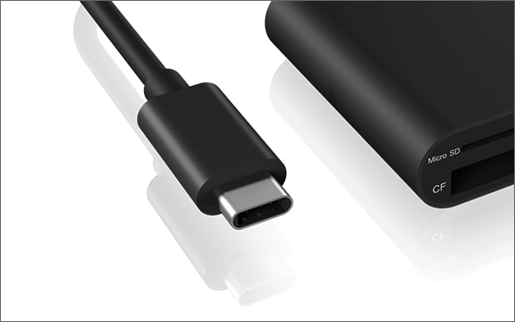 IB-CR301-C3 er den ideelle følgesvenn for profesjonelle brukere så vel som for amatørbrukere. Med den integrerte USB Type-C-kabelen (15 cm) kan de høyoppløste filene fra minnekortene (CF, SD, microSD) prosesseres enkelt og raskt.