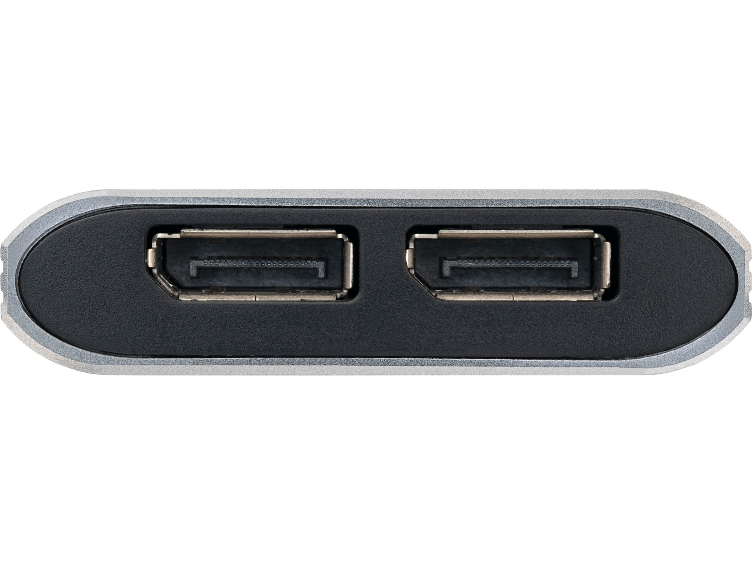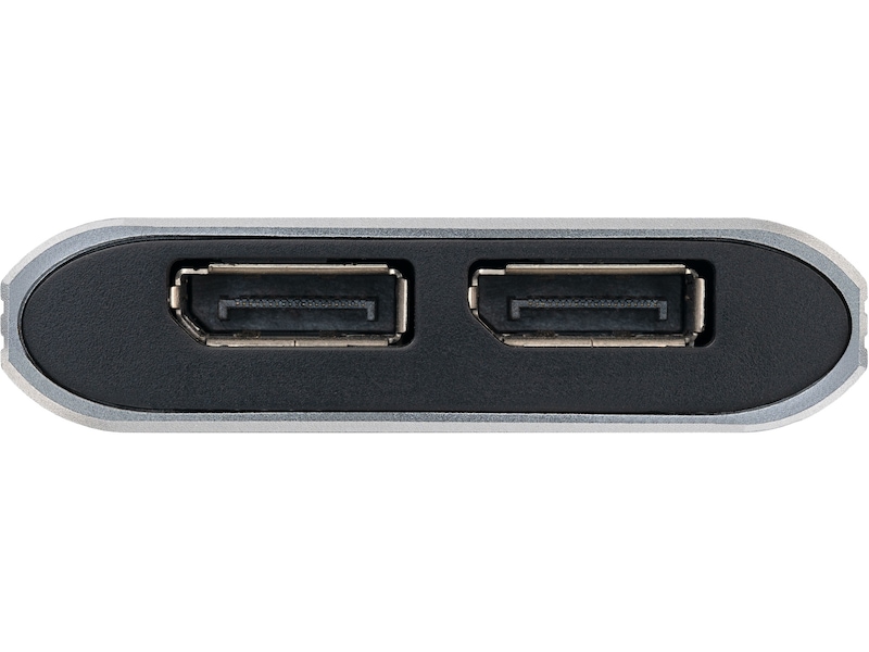 Adapteren lar deg bruke opptil 2 skjermer samtidig. DisplayPort-portene lar deg bruke to 4K-skjermer på 60 Hz eller én 5K-skjerm på 60 Hz.