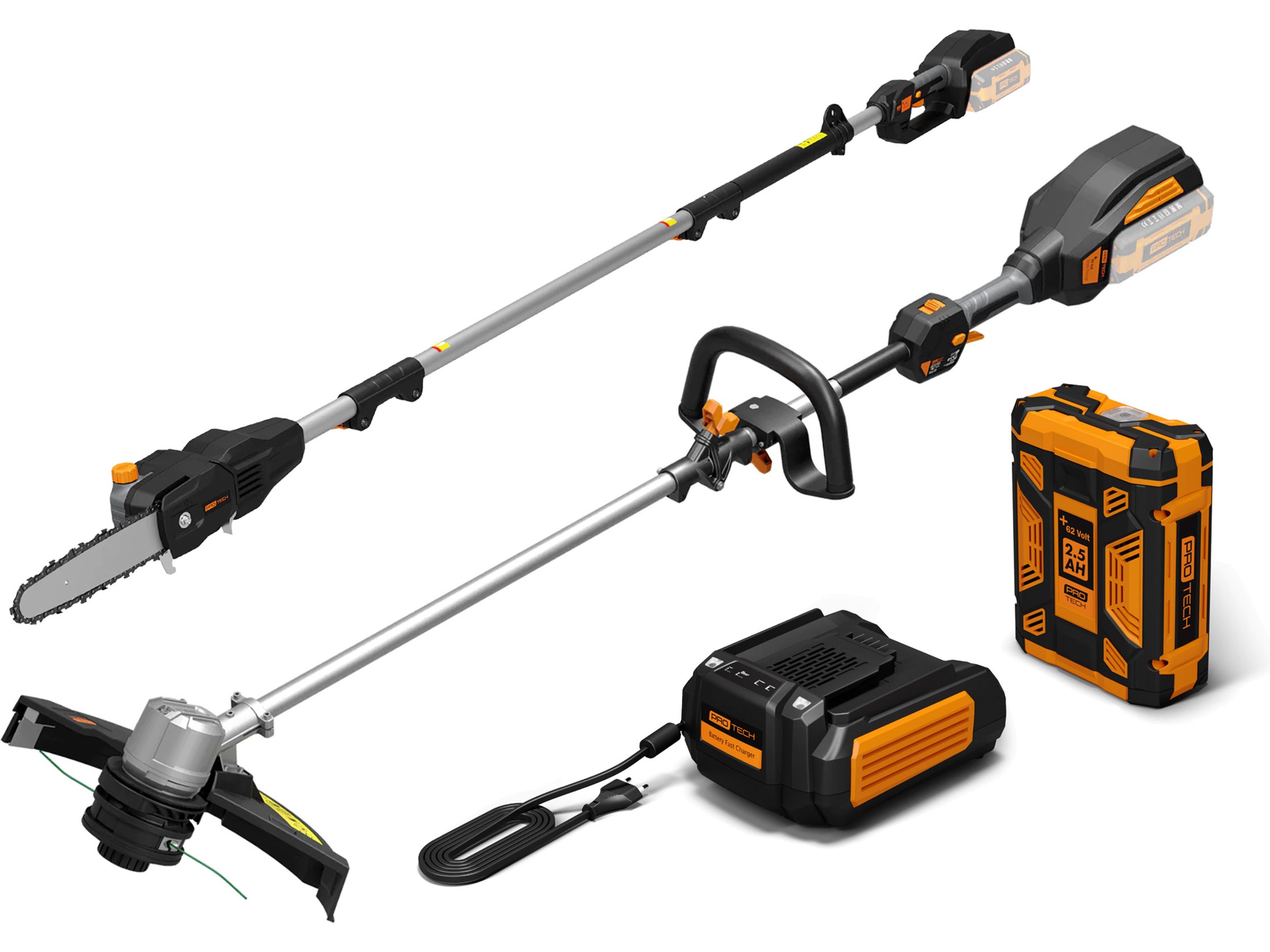 +62 Volt Protech økosystem. Et batteri system som passer til alle hageredskaper i Protech +62-serien.