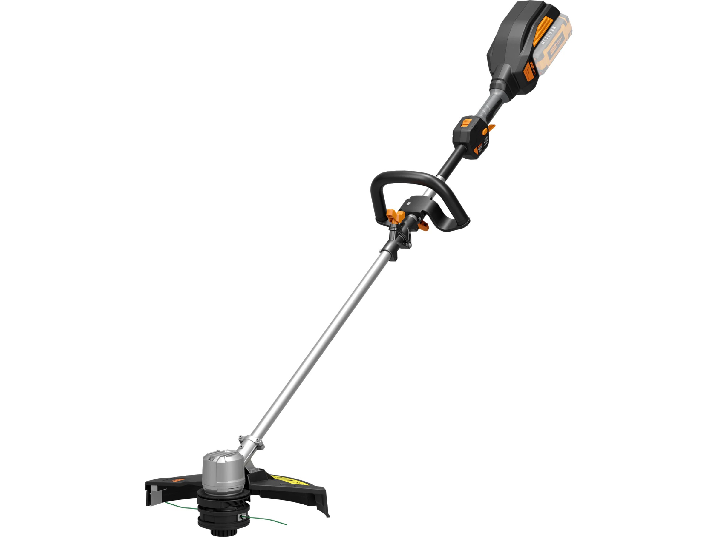 +62-volts batteridrevet gresstrimmer med børsteløs motor for bedre ytelse, lengre kjøretid og lavere støynivå. Redskapet har en diameter og kutte bredde (arbeidsbredde) på 40.6 cm. Kutte tråden er en 2mm dobbel trimmerline. Bump feed trådmating gjør det enkelt og mate ut mer trimmertråd uten og avbryte arbeidet. Håndtaket er et justerbart front loop håndtak for optimal ergonometri.