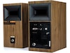 Elegant og kompakt kabinett med ekte valnøtt finér, innovative tekniske løsninger i kombinasjon med imponerende lydkvalitet.