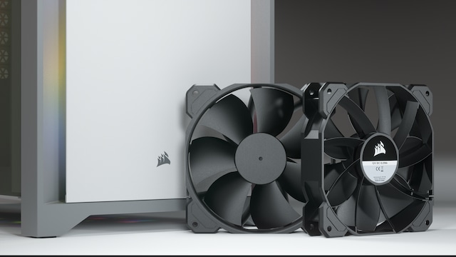 Corsair AirGuide-vifter bruker virvelmotvirkende lameller for å konsentrere luftstrømmen og forbedre kjølingen.
