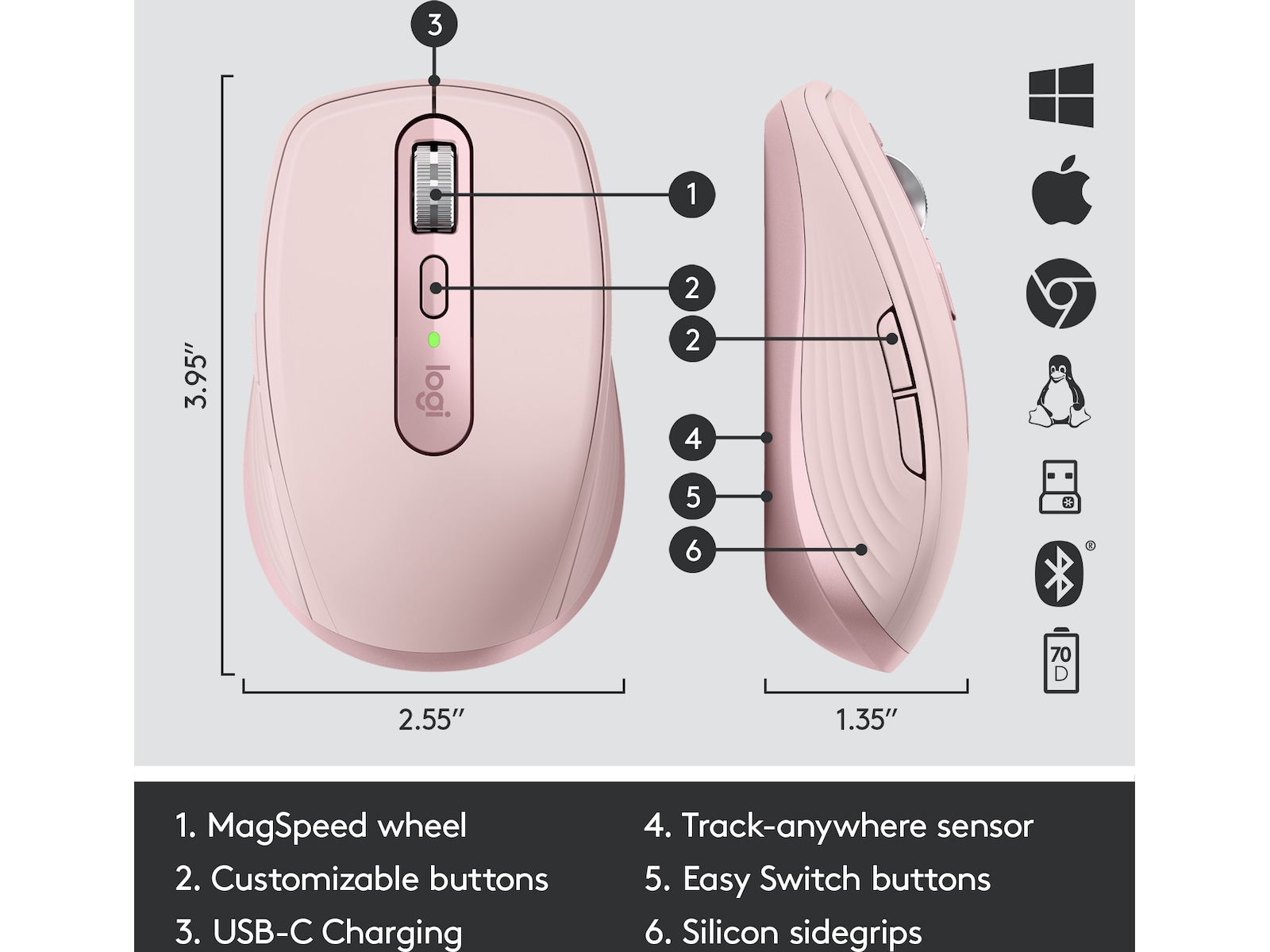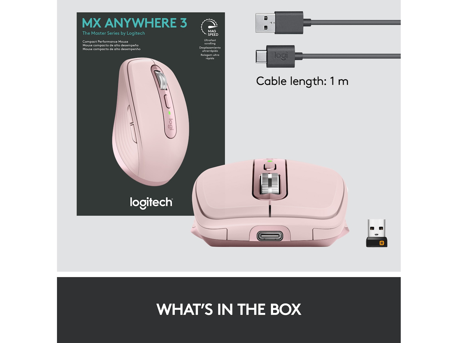 Programmerbare knapper, MagSpeed-hjul, Silikongrep, Logitech Darkfield Laser Tracking