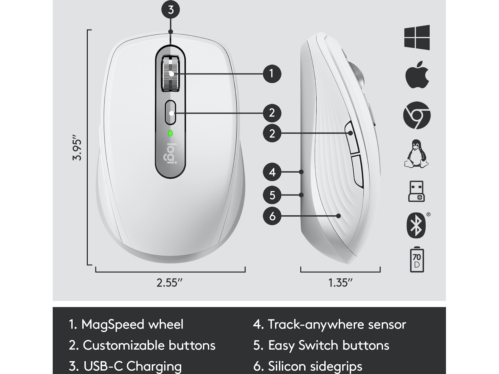 Logitech Darkfield Laser Tracking, Silikongrep, Programmerbare knapper, MagSpeed-hjul