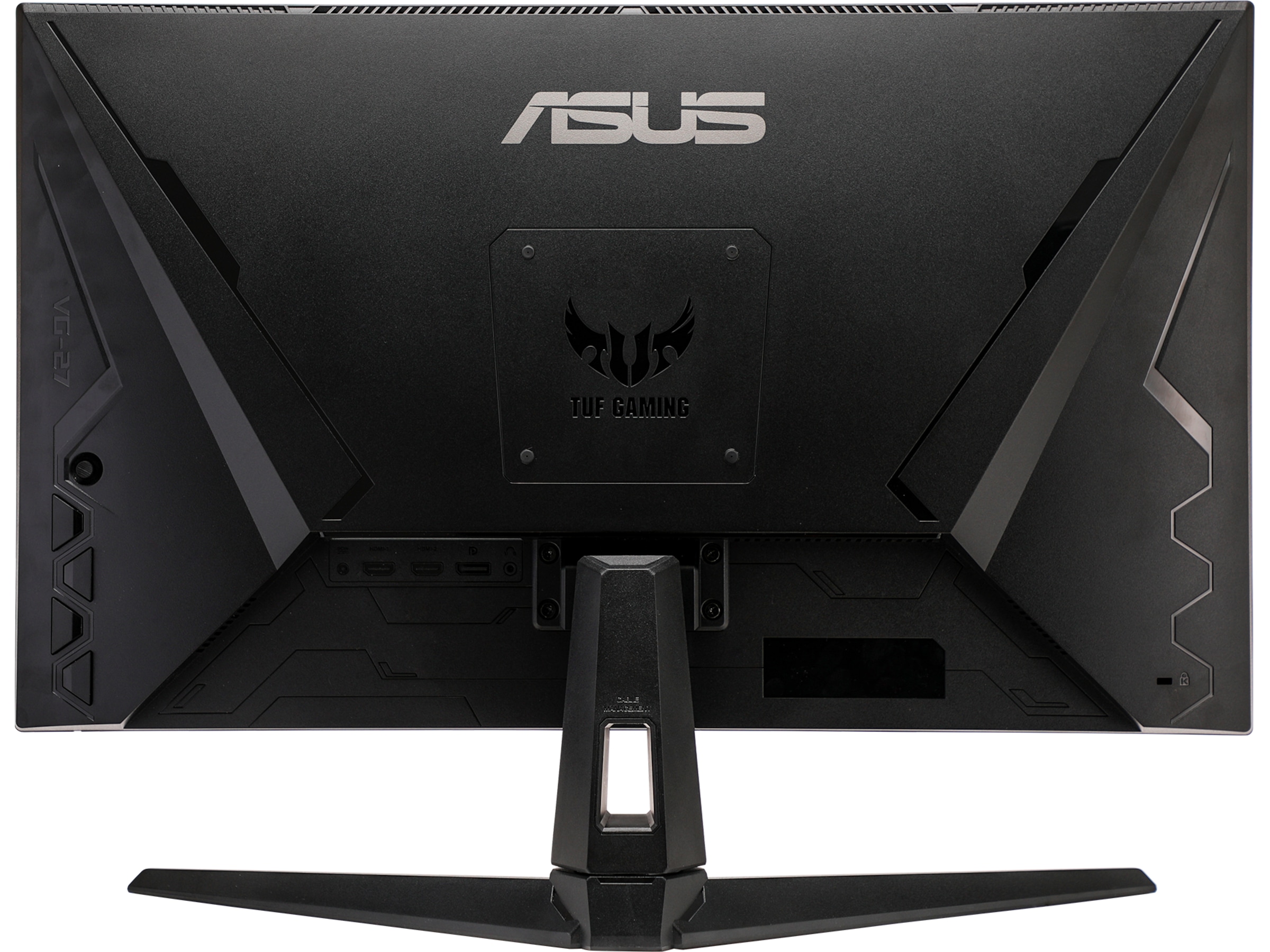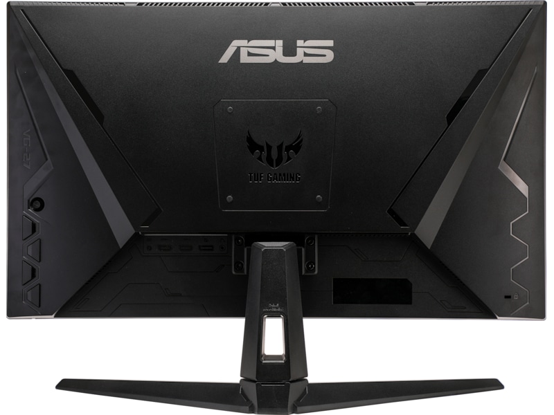 TUF Gaming VG27AQL1A har en stealth fighter-inspirert design som gir den et dynamisk og futuristisk utseende. Bakpanelet har vingelignende elementer som gir den en følelse av fart. Et slankt, minimalistisk stativ sørger for stabilitet og et anstrøk av eleganse.