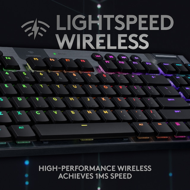 G915 tilhører en ny klasse av trådløse mekaniske spilltastaturer som kommer med 3 valg av lavprofils GL- brytere og 1 ms trådløs LIGHTSPEED- teknologi i proffklasse. Det kan levere 40 timers uavbrutt spilling på full lading. Alle tastene er fullt tilpassbare og med avansert LIGHTSYNC RGB teknologi kan du synkronisere belysningen med ethvert innhold.