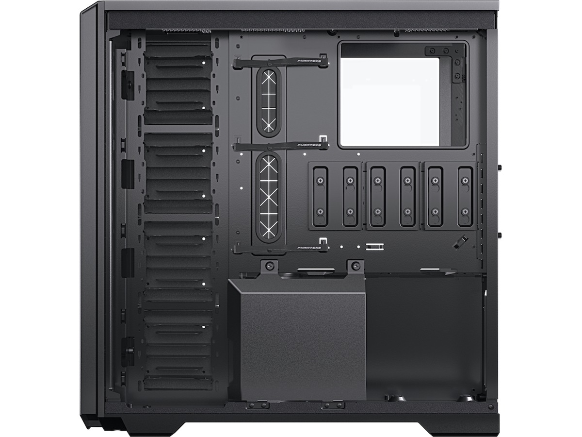 Ekstrem konfigurasjon for vifter (opptil 15x monteringssteder for vifte), vannkjøling (støtte for to 480- og to 360-radiatorer samtidig) og lagring (opptil 12x harddisker eller 11x SSD-er)