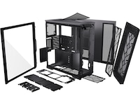 Dobbelt systemdeksel, 6 x glidelåslisser, Tilbehørsboks, Vertikal GPU-montering, Dobbel PSU-deksel, 3 x 2,5" SSD-bøyle, GPU-antinedhengsbøyle, 4 x 3,5" HDD-bøyle