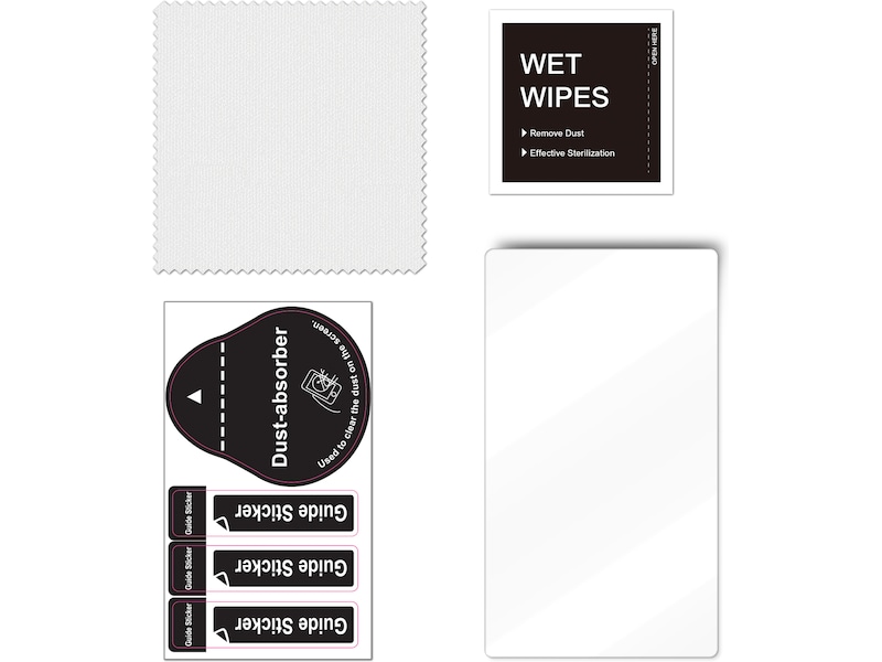 Våte renseservietter, Innrettings-klebeetiketter, Festeramme, Støvfjerner, Renseklut av mikrofiber, Skjermbeskyttelse
