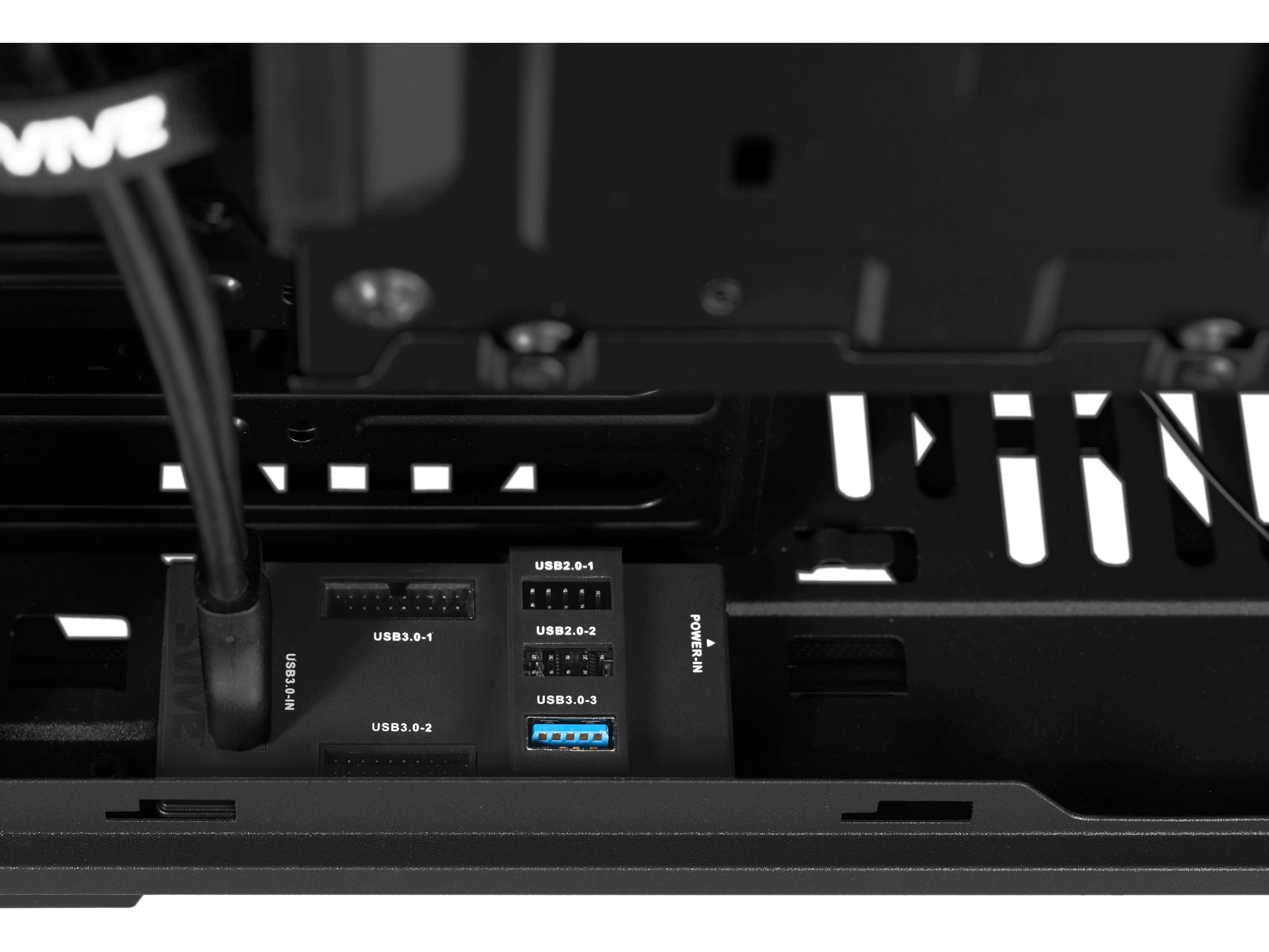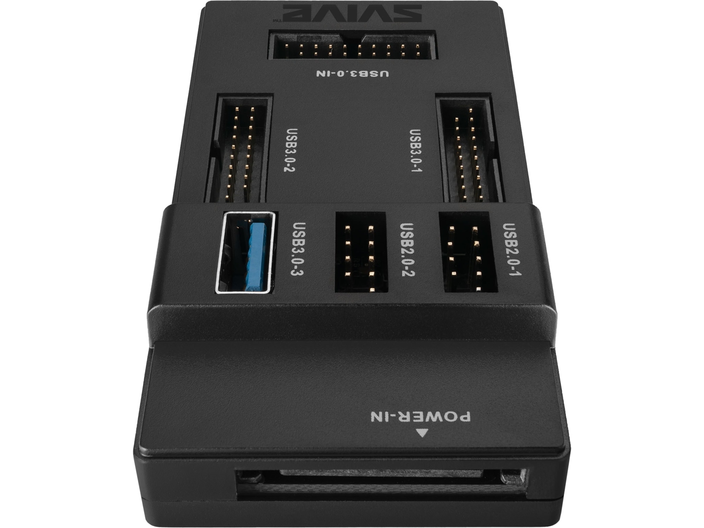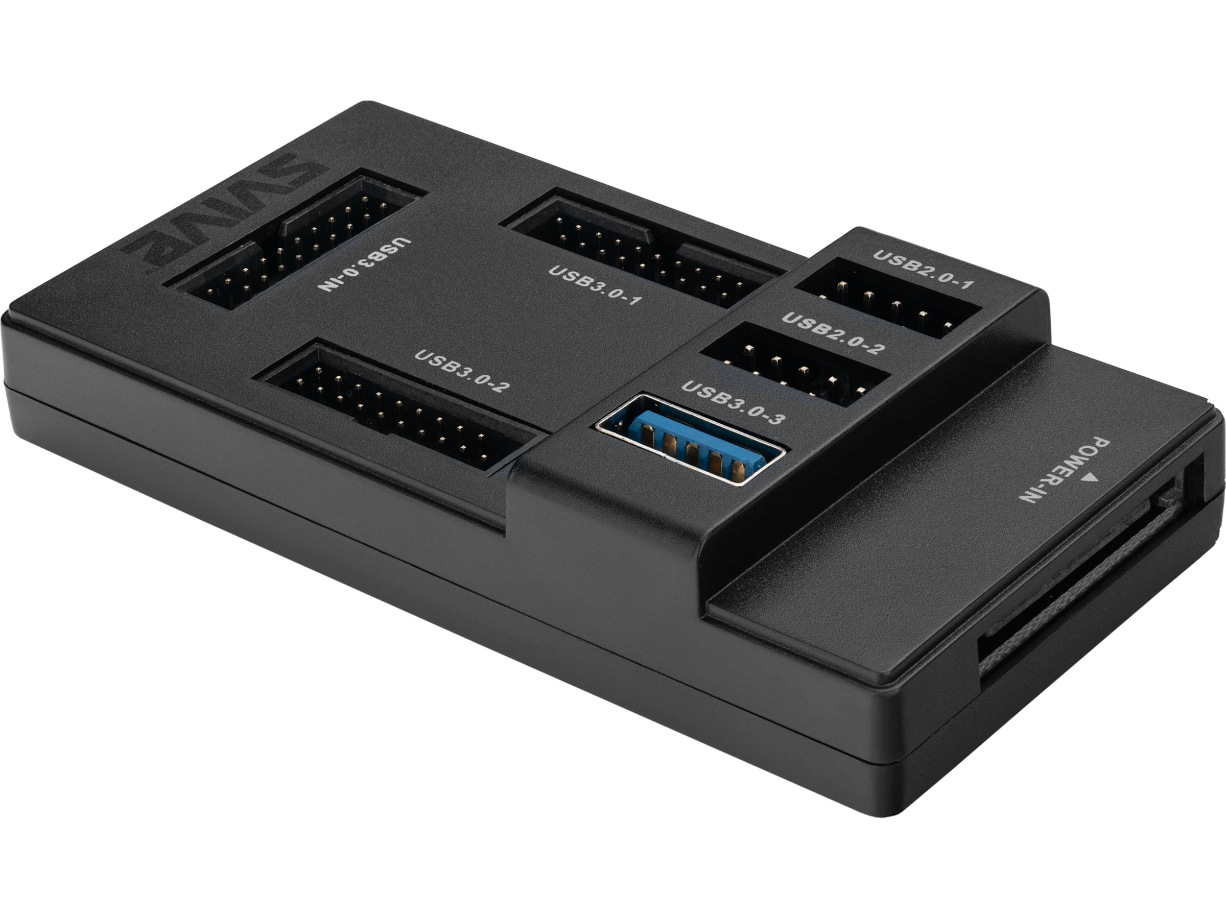 Svive Halo USB Hub øker tilkoblingsmulighetene for interne USB-porter. Boksen monteres på innsiden av kabinettet og utvider 1x USB 3.0 kontakt på hovedkortet til: