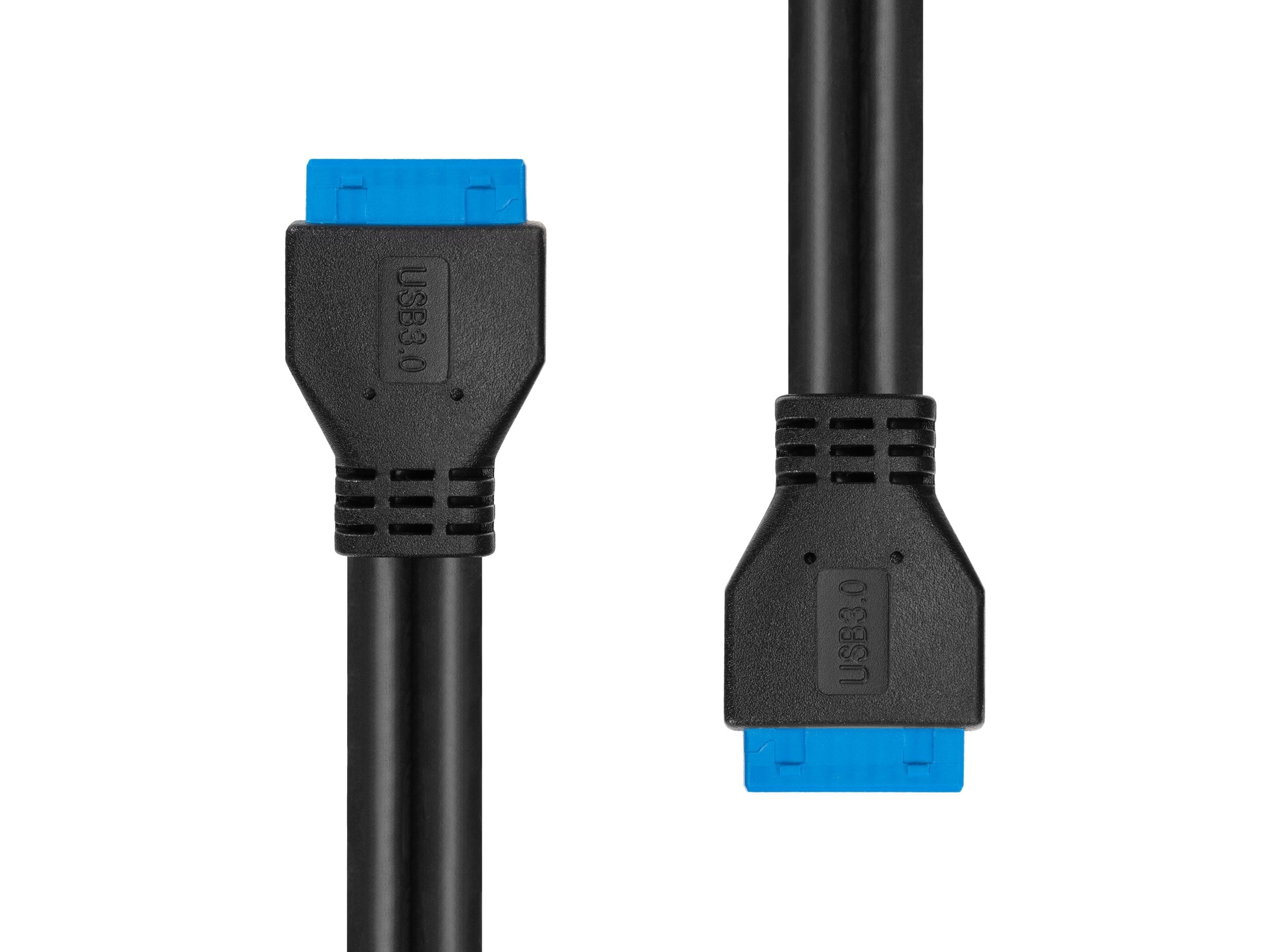 USB Hub får strøm fra Sata strømkontakt, og kobles til hovedkortet med en medfølgende kabel USB 3.0 kabel.