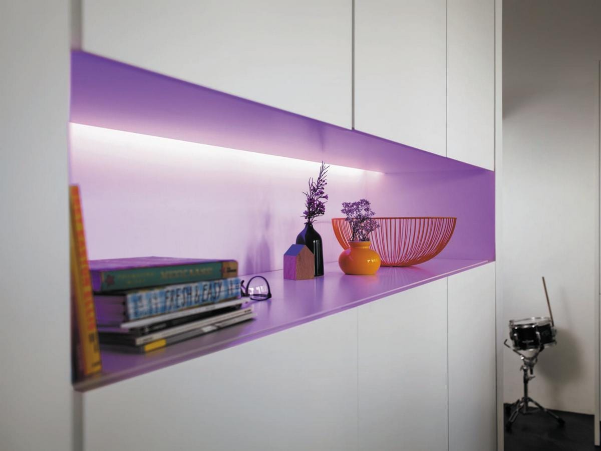Du kan også forlenge den til opptil 10 meter med forlengelsene på 1 meter. Akkurat som de øvrige produktene i White and color ambiance-kategorien har lyslinjen tilgang til 16 millioner fargenyanser, som du kan skreddersy etter egen smak både når det gjelder stemningsskaping og underholdningsopplevelse. Lyslinjen er holdbar og har et meget godt lim, så den sitter på vanskelige overflater og har ingen problemer med hjørner.