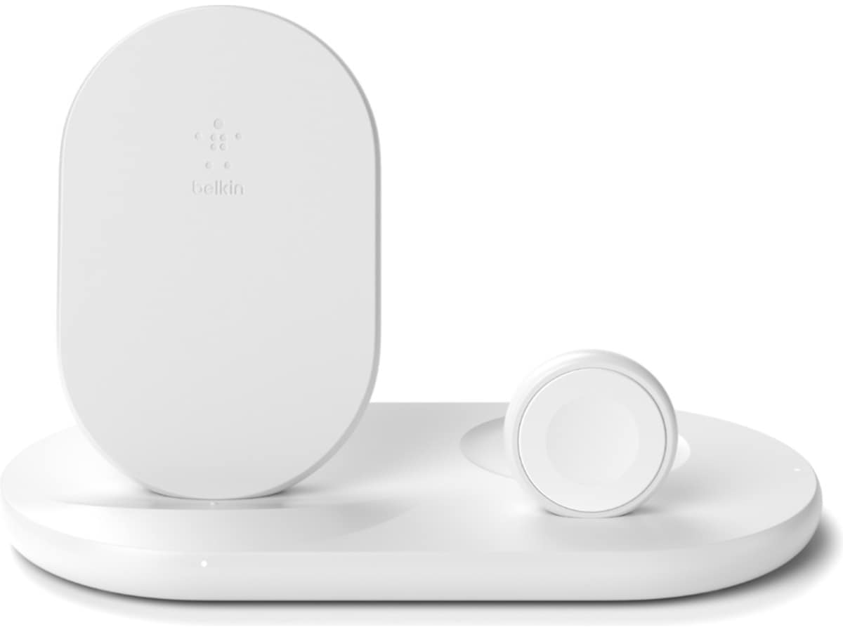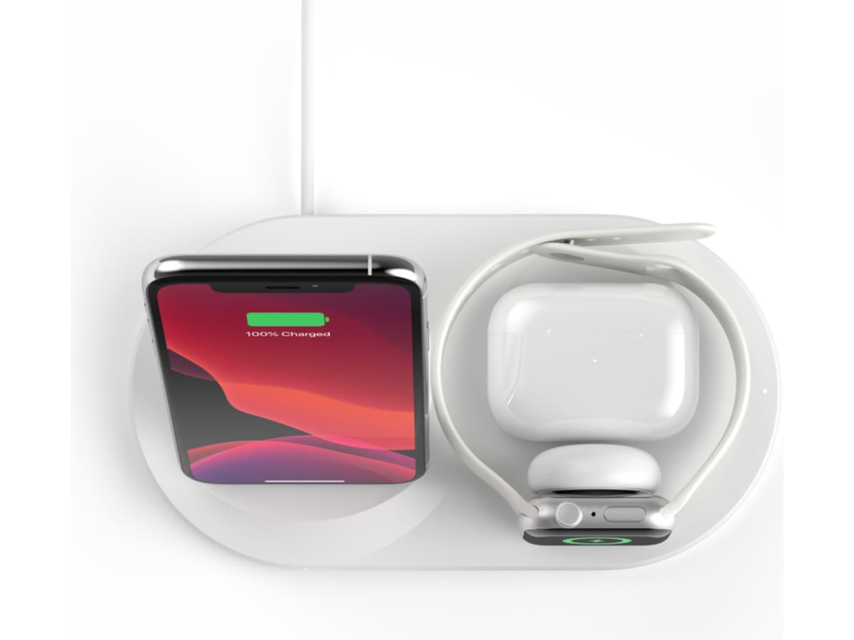En 3-i-1 ladeforankringsstasjon som kan brukes til å raskt lade alle dine trådløse Apple-enheter samtidig. Denne stilige forankringsstasjonen kan trådløst lade en iPhone på 7,5 W, har en magnetisk lademodul for Apple Watch og en 5 W pute for trådløs lading av AirPods. Dette gjør at den ikke bare lader alle enhetene så raskt som mulig, men at den også passer sømløst inn i ethvert miljø.