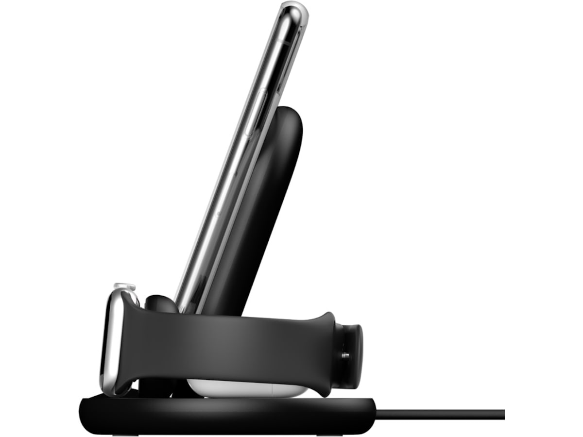 En 3-i-1 ladeforankringsstasjon som kan brukes til å raskt lade alle dine trådløse Apple-enheter samtidig. Denne stilige forankringsstasjonen kan trådløst lade en iPhone på 7,5 W, har en magnetisk lademodul for Apple Watch og en 5 W pute for trådløs lading av AirPods. Dette gjør at den ikke bare lader alle enhetene så raskt som mulig, men at den også passer sømløst inn i ethvert miljø.