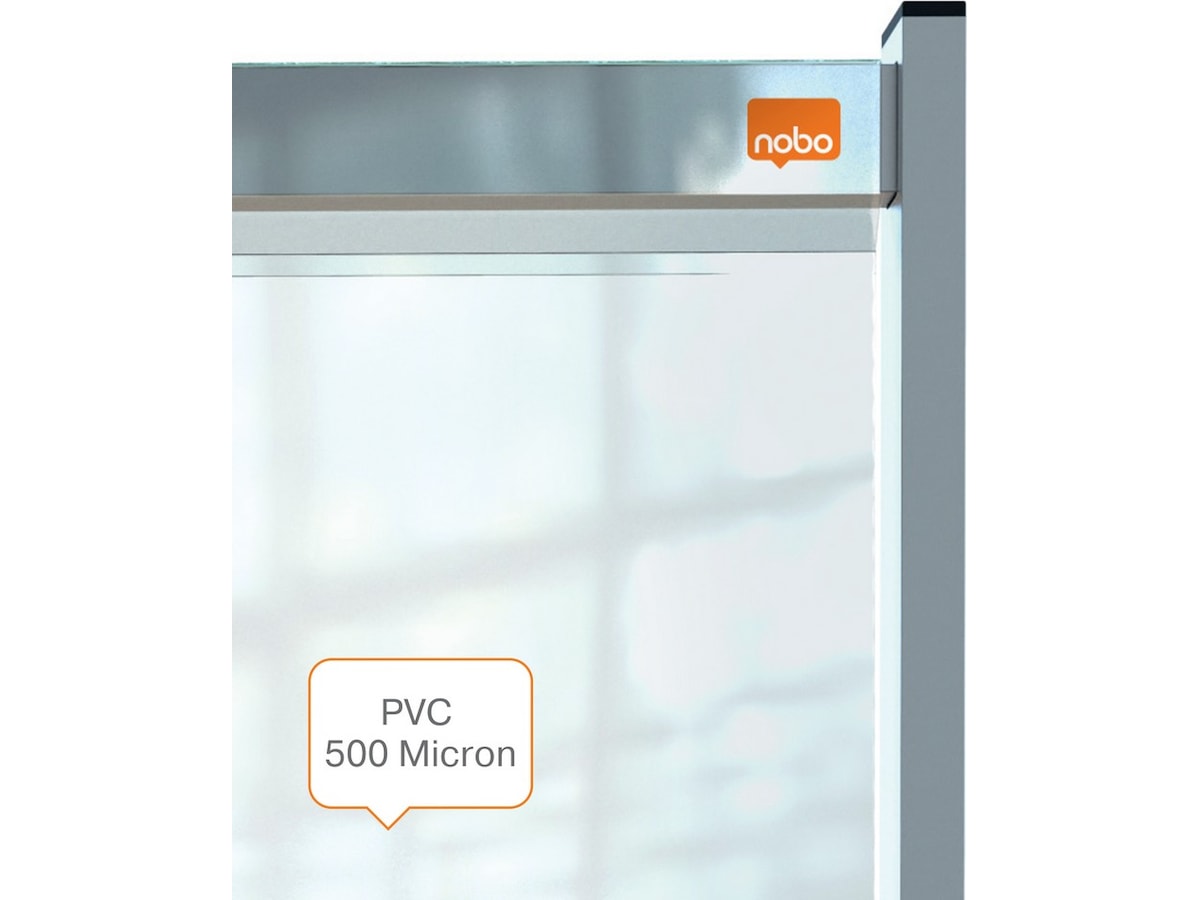 Nobo klar PVC full lengde romdeler gir en effektiv sosial distanseløsning for ethvert miljø, samtidig som det gir klar og sikker kommunikasjon. Gulvstående romdeler kan brukes i både innendørs og utendørs miljøer med mulighet til å rulle sammen PVC-skjermen for enkel lagring. Bruk ekstra flisvekter hvis det er nødvendig for ekstra stabilitet. Denne romdeleren er 2m høy; gir et høyt beskyttelsesnivå for både sittende og stående individer. 500 mikron PVC-overflaten kan enkelt tørkes ren, og den gjennomsiktige designen betyr at naturlig lys ikke begrenses eller reduseres. Har en værbestandig pulverlakkert trim. Størrelse: 1480x2060mm.