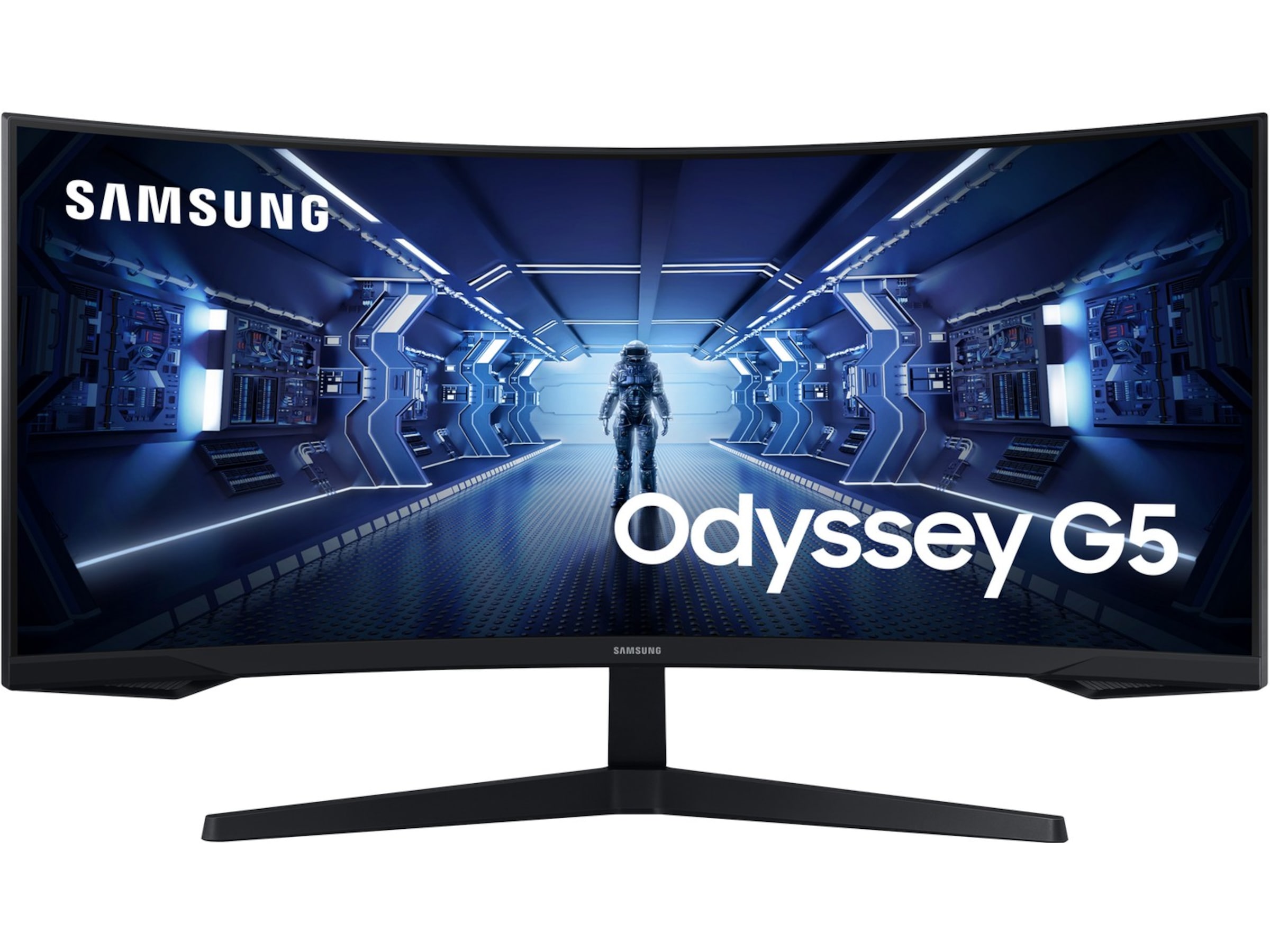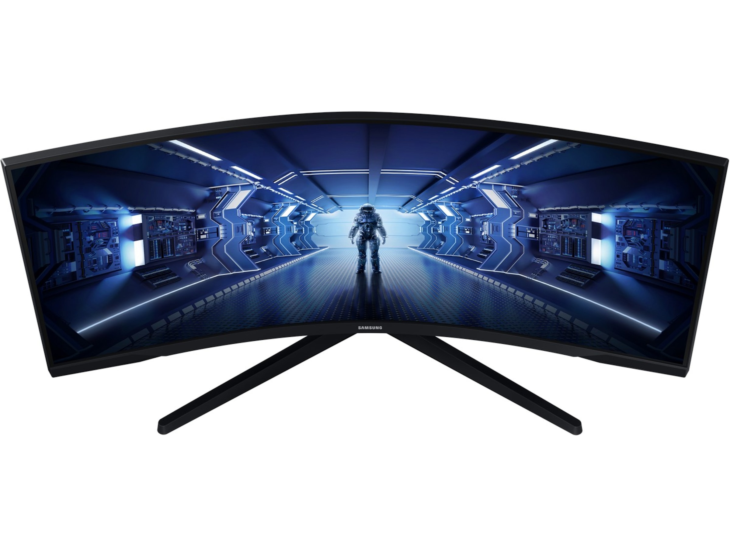 Samsung 34" buet gamingskjerm C34G55T med 1000R fyller alle deler av synsfeltet. Ultra WQHD muliggjør en skjermoppløsning på 3440x1440. AMD FreeSync Premium og HDR10.