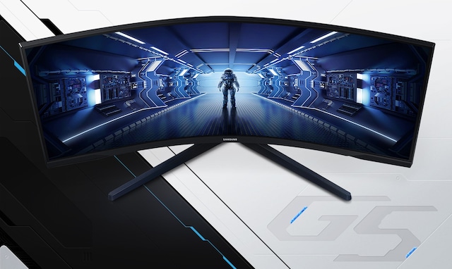 Samsung 34" buet gamingskjerm C34G55T med 1000R fyller alle deler av synsfeltet. Ultra WQHD muliggjør en skjermoppløsning på 3440x1440. AMD FreeSync Premium og HDR10.