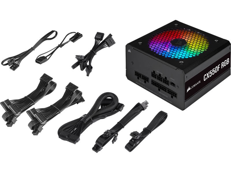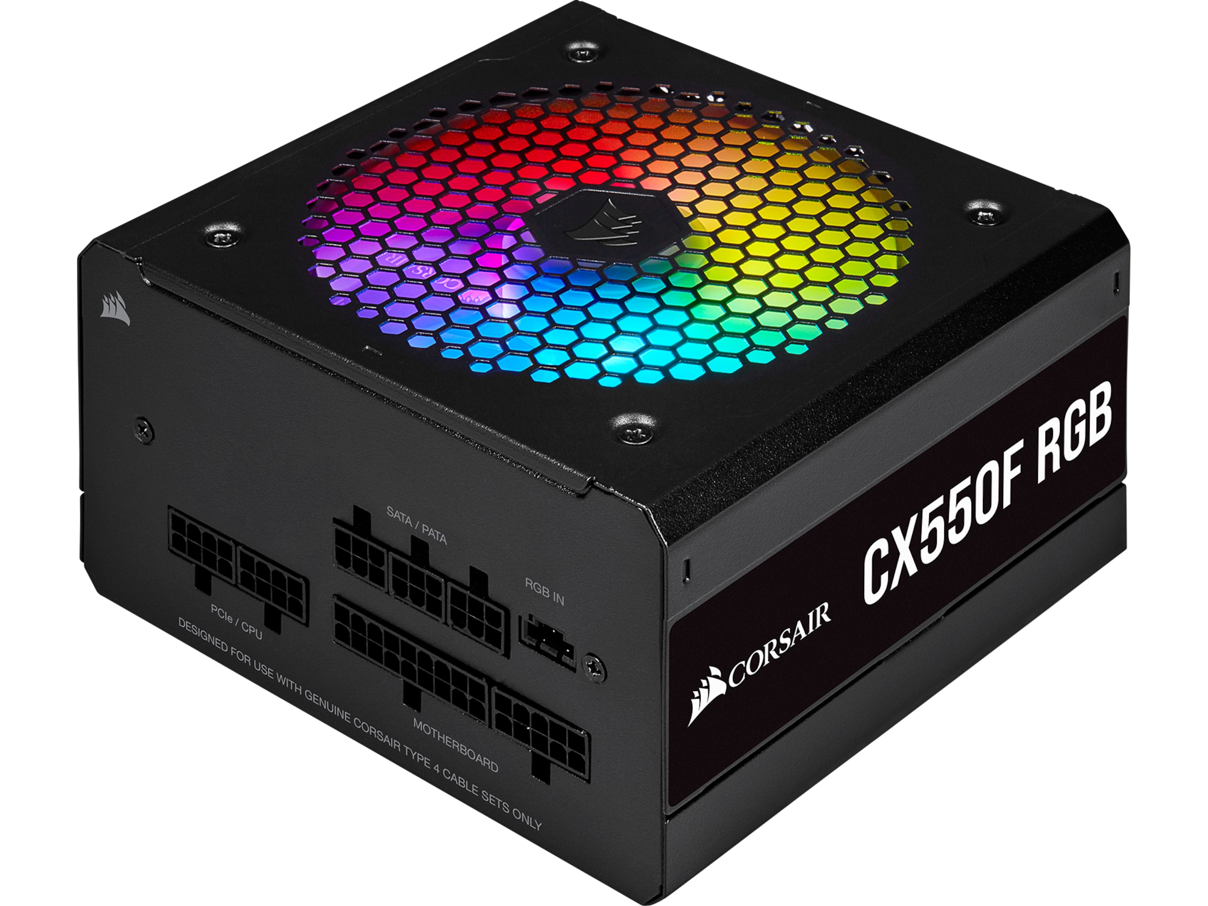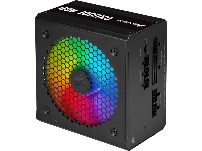Corsair CX-F RGB-serien består av fullstendig modulære strømforsyninger, og leverer pålitelig strøm på 80 PLUS Bronze-effektivitetsnivå til systemet ditt, i tillegg til levende, tilpassbar belysning fra en 120 mm RGB-vifte med åtte RGB-lysdioder. Du kan enkelt veksle mellom ti forhåndsinnstilte lysmoduser, eller koble til en Corsair iCUE RGB Lighting Controller eller et kompatibelt hovedkort for å få avansert lysstyring over åtte individuelt adresserbare lysdioder.