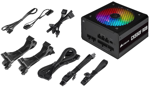 Corsair CX-F RGB-serien består av fullstendig modulære strømforsyninger, og leverer pålitelig strøm på 80 PLUS Bronze-effektivitetsnivå til systemet ditt, i tillegg til levende, tilpassbar belysning fra en 120 mm RGB-vifte med åtte RGB-lysdioder. Du kan enkelt veksle mellom ti forhåndsinnstilte lysmoduser, eller koble til en Corsair iCUE RGB Lighting Controller eller et kompatibelt hovedkort for å få avansert lysstyring over åtte individuelt adresserbare lysdioder.
