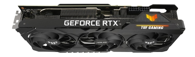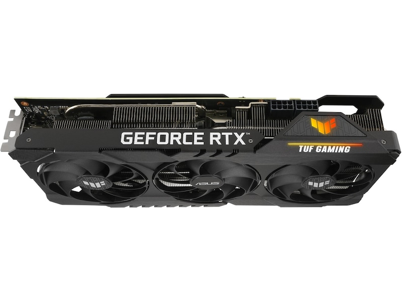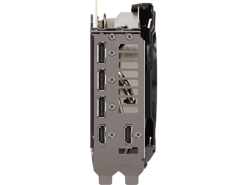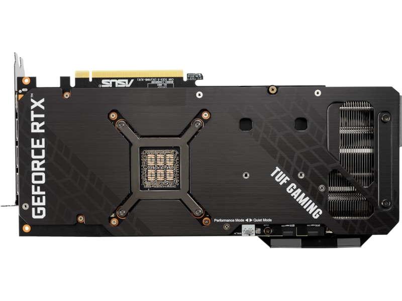 Varmesprederen trekker varmen opp i varmerørene, som fører den gjennom en ribbestabel som fyller det meste av kortets store fotavtrykk på 2,7 spor. Denne generasjonen av TUF Gaming-skjermkort har også en egen kjøleribbe for VRAM for å holde temperaturene godt under de maksimale driftsspesifikasjonene.